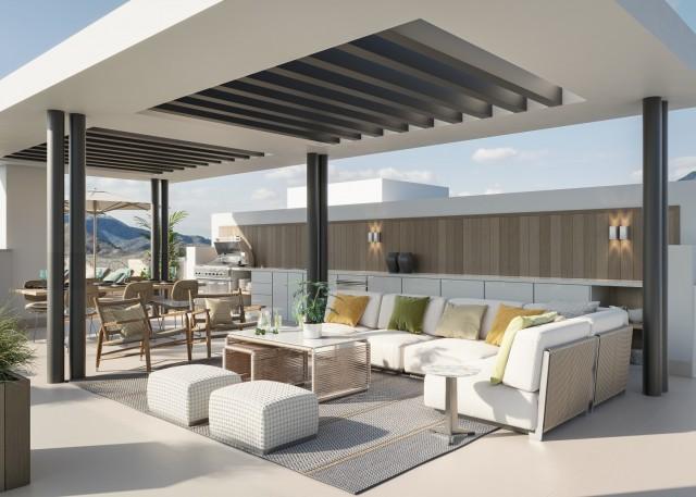 New Apartment Project for sale at the East side of Marbella with Panoramic Views. Set in a bespoke development of 44 private sea view residences, immersed in authentic Andalusia, bordering a protected nature area and conceived by a world class team. Designed so that all properties benefit from dramatic views of the sea and beyond to Gibraltar and Africa. Bordering a protected nature area of 230 hectares, just 44 private residences are available within this gated community, providing two and three bedroom apartments, including 10 penthouses, each of which have their own private pool on the rooftop solarium terrace. To ensure that time in residence is as enjoyable and hassle free as possible, a comprehensive concierge service is available as well as full and highly personalised property and rental management services. For peace of mind, our elegant signature entrance to the complex is manned 24/7 with a security guard, video surveillance and a fully fenced perimeter. Below ground there is underground parking for every home and spacious private storage facilities.