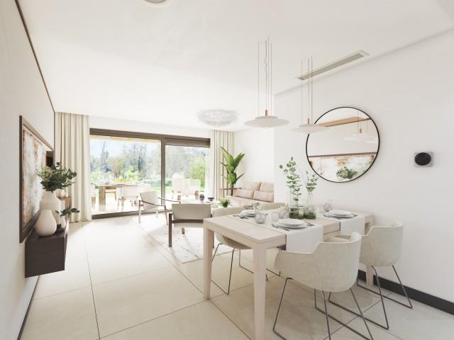 MODERN CONTEMPORARY MEDITERRANEAN STYLE COMPLEX A private modern residential complex at the heart of Golf Valley, in Nueva Andalucía, just 5 kilometers from Puerto Banús. This new residential complex comprises 98 apartments and penthouses distributed throughout several three storey buildings in contemporary Mediterranean style. The 2 and 3 bedroom apartments and the wonderful penthouses are surrounded by carefully landscaped gardens and four communal pools. GENEROUSLY SIZED TERRACE WITH PANORAMIC VIEW The project has been designed to ensure that all of the homes enjoy impressive panoramic views from the generously sized terraces and living rooms. Architecture in the communal areas is inspired by the “Boho Chic” and “Country Chic” aesthetic concepts where natural materials and colours are combined to blend into the local scenery in a balanced way, favoring a relaxed ambience and an escape to peaceful surroundings. The homes will be delivered fully equipped with top quality branded finishings and ready to move in. Each home also has a storage room and a garage parking space. IDEAL LOCATION The luxury complex sits proudly above Puerto Banús and within easy reach of the many high-quality restaurants, bars and boutiques that line the port. The three excellent golf courses that surround the project will delight even the most demanding of golfers. 2 bedroom apartment from 430.000 to 450.000 euros 3 bedroom apartment from 500.000 to 510.000 euros 3 bedroom penthouse from 800.000 to 820.000 euros