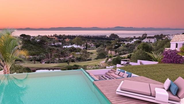 Luxury modern villa development for sale at the East side of Estepona. The villa complex comprise of 11 unique private villas in a secured gated golf and country club estate, located between Marbella and Estepona on a frontline golf location, with panoramic golf and sea views. Every unique detail of your villa has been designed to make your home a piece of art. Design of every villa has been meticulously planned to provide the comfort required of today’s modern living, the entertainment demanded of a leisure home on the Costa del Sol and the reliability and quality expected in the luxury property segment. Lounging happily by the sensual open-flame firepit, to ambient lighting throughout, to the high-speed internet access to stay connected to the outside world, every comfort feature and optional addition you choose to bespoke your home has been incorporated to create an understated glamour to your villa and make your life extremely comfortable. The developer understands the importance of living with complete peace of mind. From the moment you pass through the entrance of the golf complex, you will feel assured that your home and family is safe. Each property is secured with alarm and camara protection systems. Only a few available, so don't wait too long!