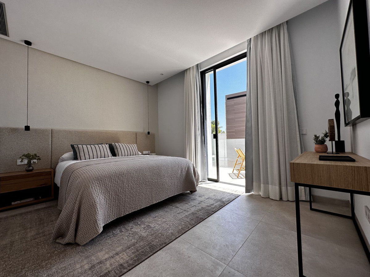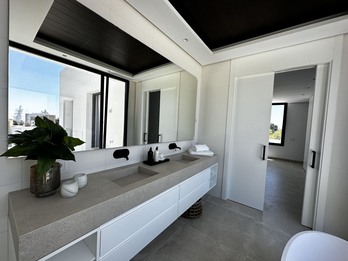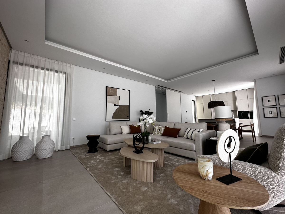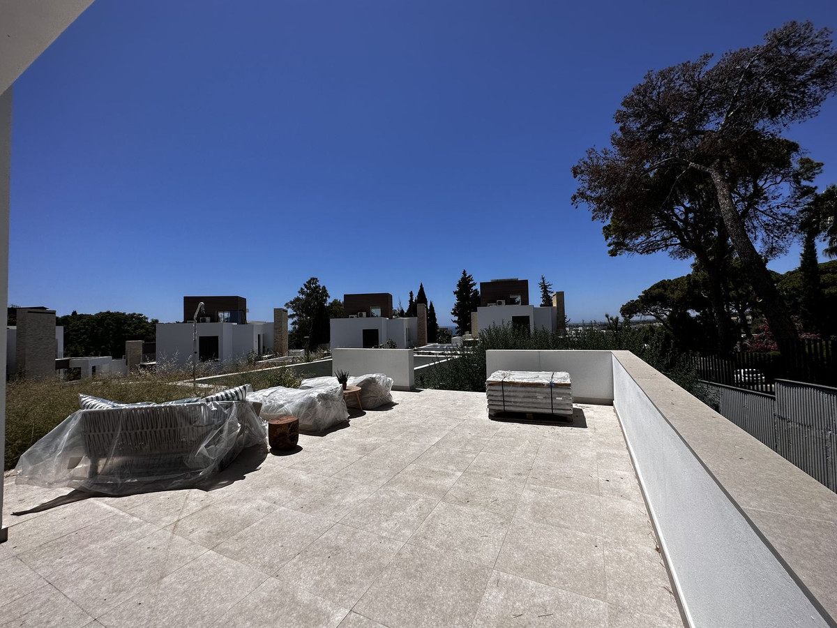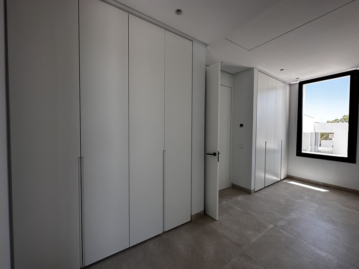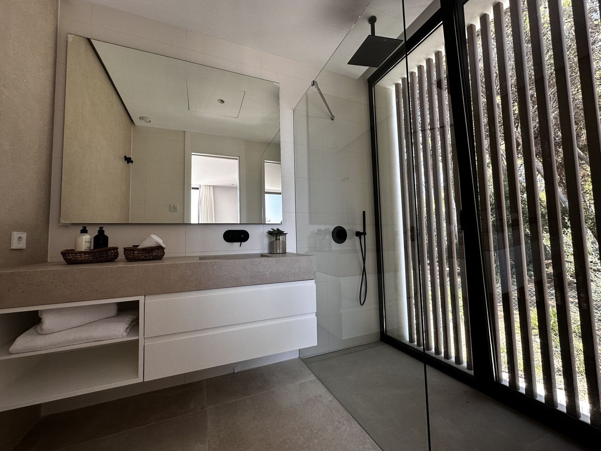 Modern luxury villa of exceptional qualities is located in a gated community, consisting of only 15 villas, with 24 hour security guards and concierge services situated in a green oasis on the edge of the famous Golden Mile and just a few metres from the beach, a few minutes walk from the historic old town. With a plot of 1000m2, a total living area of 730m2, large terrace of 225m2 and includes 5 bedrooms and 5 bathrooms, a spacious living room, an open plan kitchen equipped with the highest quality furniture and appliances, a private lift connecting each level of the property, cinema, sauna and hammam, under floor heating, a rooftop solarium with beautiful views towards the sea and private garage for 2 cars + 2 parking spaces. Both the garden and pool will be centrally maintained by the community for a carefree lifestyle. Construction of the villa is finished.