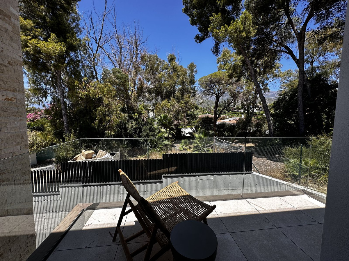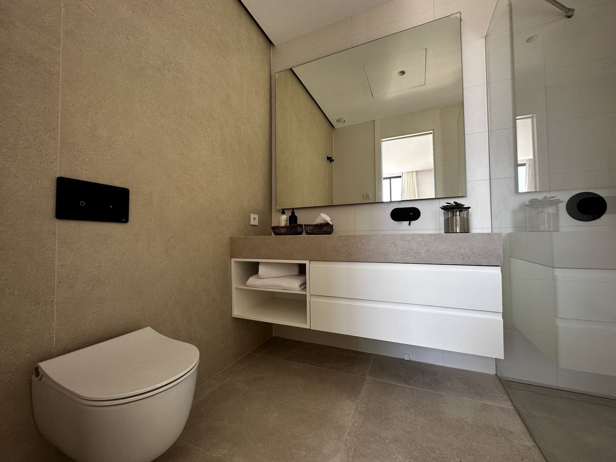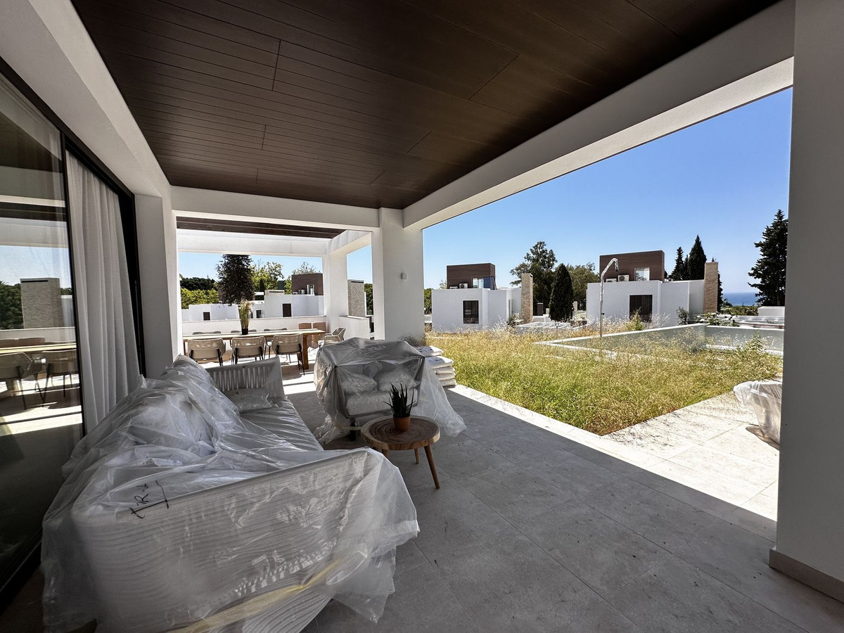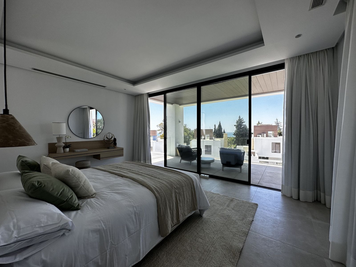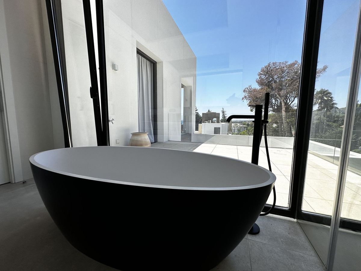 Modern luxury villa of exceptional qualities is located in a gated community, consisting of only 15 villas, with 24 hour security guards and concierge services situated in a green oasis on the edge of the famous Golden Mile and just a few metres from the beach, a few minutes walk from the historic old town. With a plot of 1000m2, a total living area of 730m2, large terrace of 225m2 and includes 5 bedrooms and 5 bathrooms, a spacious living room, an open plan kitchen equipped with the highest quality furniture and appliances, a private lift connecting each level of the property, cinema, sauna and hammam, under floor heating, a rooftop solarium with beautiful views towards the sea and private garage for 2 cars + 2 parking spaces. Both the garden and pool will be centrally maintained by the community for a carefree lifestyle. Construction of the villa is finished.