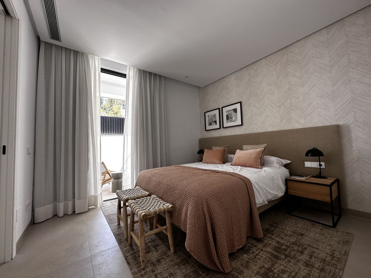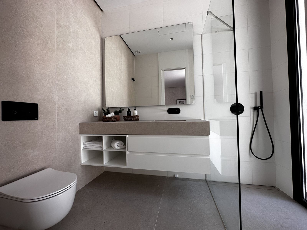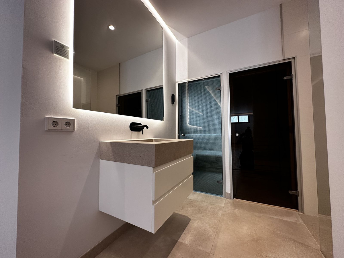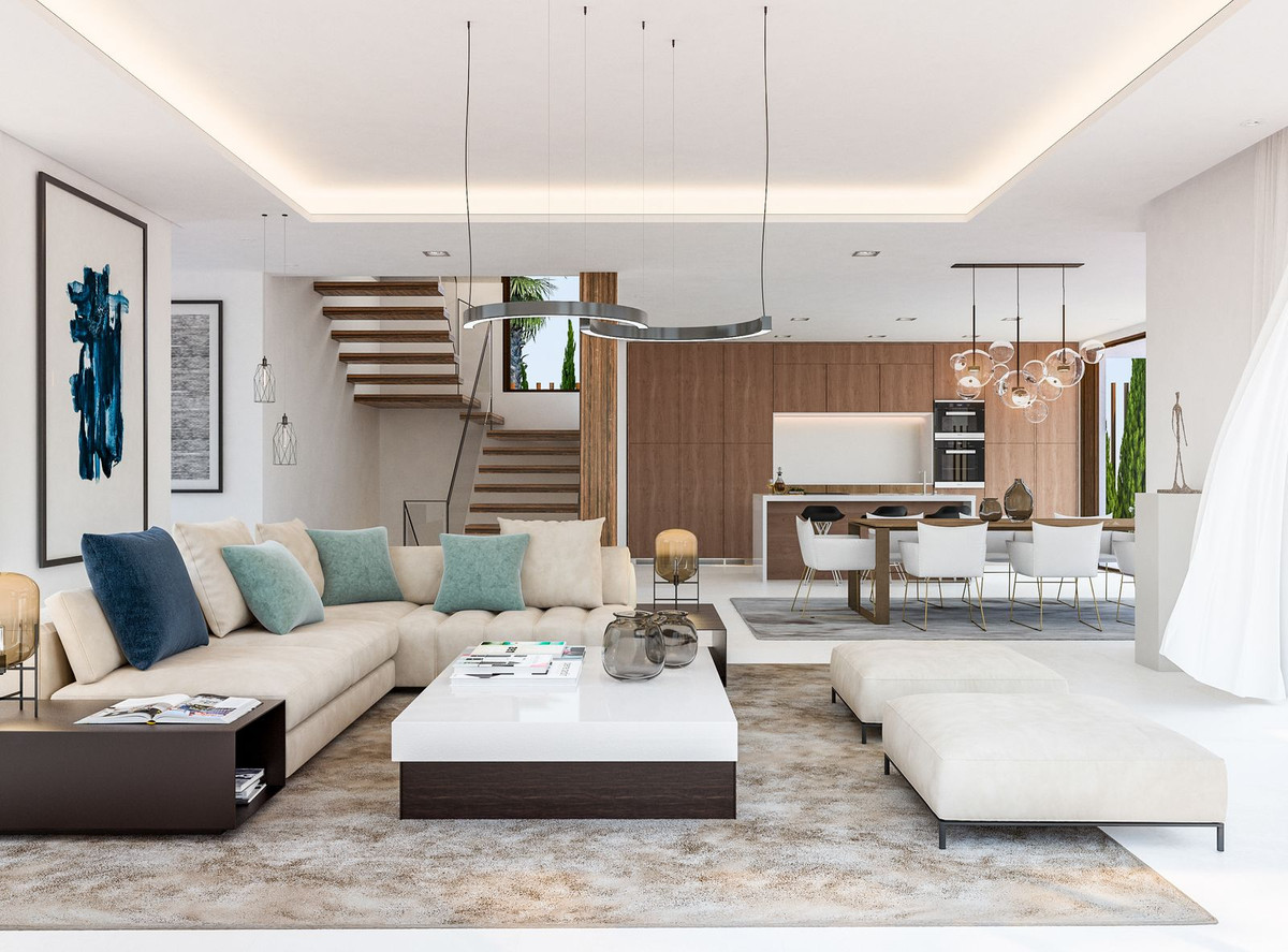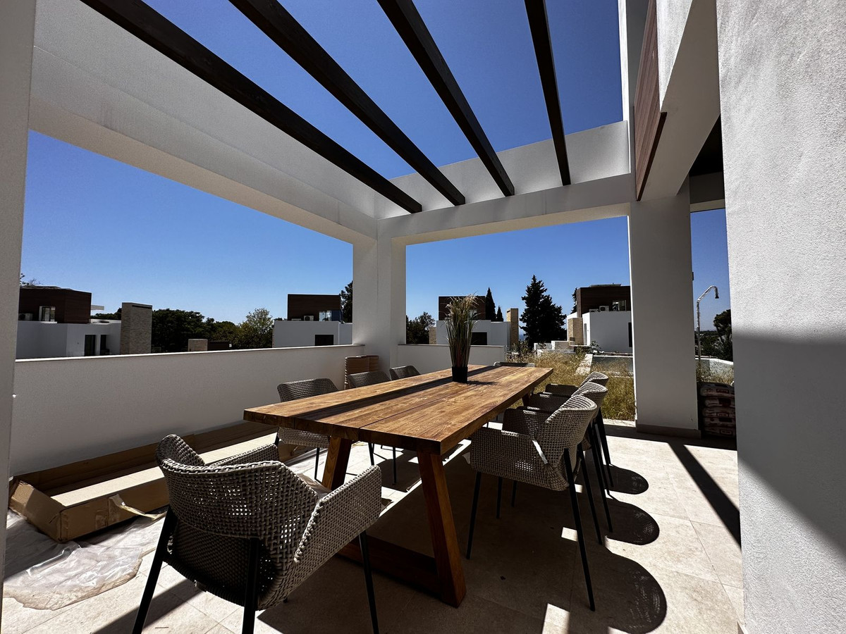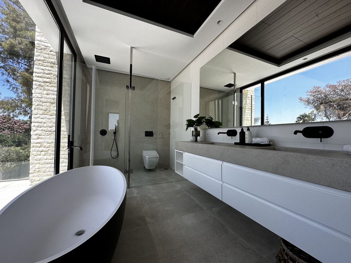 Modern luxury villa of exceptional qualities is located in a gated community, consisting of only 15 villas, with 24 hour security guards and concierge services situated in a green oasis on the edge of the famous Golden Mile and just a few metres from the beach, a few minutes walk from the historic old town. With a plot of 1000m2, a total living area of 730m2, large terrace of 225m2 and includes 5 bedrooms and 5 bathrooms, a spacious living room, an open plan kitchen equipped with the highest quality furniture and appliances, a private lift connecting each level of the property, cinema, sauna and hammam, under floor heating, a rooftop solarium with beautiful views towards the sea and private garage for 2 cars + 2 parking spaces. Both the garden and pool will be centrally maintained by the community for a carefree lifestyle. Construction of the villa is finished.