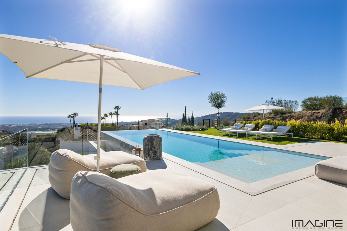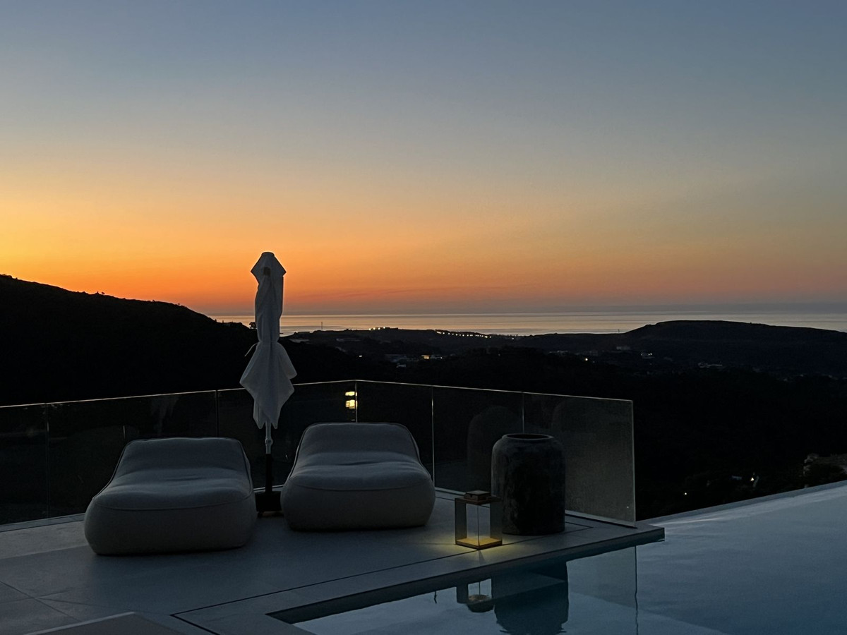 Villa Imagine: Luxury Redefined with Endless Mediterranean Views to Gibraltar & Africa Welcome to Villa Imagine - Where Timeless Elegance Meets Breathtaking Sea & Mountain Horizons Nestled in the prestigious and tranquil hills of Monte Mayor, Benahavis, Villa Imagine represents the pinnacle of luxury living where elegance and sophistication meet unparalleled privacy and breathtaking sea and mountain views. Designed by one of Marbella’s most renowned and internationally awarded architects, this villa embodies a sanctuary of peace amongst the vibrant life of the Costa Del Sol. Location - A Confluence of Beauty and Convenience Villa Imagine sits majestically between the charm of Marbella and the serenity of Estepona in the exclusive Monte Mayor community. This secured and gated haven offers not just a residence but a lifestyle highlighted by nature, tranquillity, and panoramic views over the Mediterranean stretching to Gibraltar and Morocco. Within a mere 5 minutes from the prestigious Marbella Club Golf Resort, 10 minutes from Villa Padierna Golf & Hotel, 18 minutes to the glamourous Puerto Banus, and 15 minutes to Estepona, Villa Imagine places you perfectly within the lap of luxury and connectivity. Architectural and Interior Elegance Every inch of Villa Imagine is a testament to luxury living with its sleek modern design seamlessly blending with bohemian chic touches. Expansive windows in the living areas ensure the interior is bathed in natural light while effortlessly framing the stunning vistas of the sea and the mountains. Whether it's the state-of-the-art, fully equipped kitchen or the spacious dining and living areas, each corner of Villa Imagine has been designed for an unrivalled living experience. Outdoor Splendour Step outside to discover the villa’s crown jewel - an exquisite heated infinity pool that merges with the horizon, providing an immersive swimming experience against a backdrop of the Mediterranean. The expansive terrace, stylishly furnished with a bohemian chic flair, offers versatile outdoor living spaces, including a dining area, comforting lounge sets, TV area, and plush sun loungers for basking in the serene environment. Thoughtfully Designed Amenities Villa Imagine caters to every need. Beyond its serene bedrooms offering awe-inspiring views, the villa hosts a designated office space for those who blend work with pleasure, all without stepping away from the picturesque surroundings. The flexibility of the villa’s design also allows the sixth bedroom to transform into a multifunctional space, be it a private gym or a secluded retreat for meditation on the terrace. A Lifestyle Like No Other Villa Imagine offers more than just a home; it provides an entry into a lifestyle marked by luxury, exclusivity, and tranquility. From its iconic location in Benahavis, close to some of the best golf courses and luxurious resorts, to its meticulously designed living spaces, every aspect of Villa Imagine is curated to surpass expectations. For those who seek to dwell in the splendour of nature while enjoying the pinnacle of luxurious living, Villa Imagine beckons. Experience the epitome of elegant exclusivity—discover Villa Imagine in het exclusieve Monte Mayor - Benahavis. Detached Villa, Benahavís, Costa del Sol. 6 Bedrooms, 5 Bathrooms, 2 outdoor showers, Total Built 628 m², Terrace 150 m², Garden/Plot 3100 m². Setting : Country, Close To Golf, Close To Town, Close To Forest, Urbanisation. Orientation : East, South, West. Condition : Excellent. Pool : Private, Heated. Climate Control : Air Conditioning, Hot A/C, Cold A/C, U/F Heating, U/F/H Bathrooms. Views : Sea, Mountain, Country, Panoramic, Pool, Forest. Features : Covered Terrace, Fitted Wardrobes, Private Terrace, Solarium, Satellite TV, WiFi, Guest Apartment, Storage Room, Utility Room, Double Glazing, Domotics, Fiber Optic. Kitchen : Fully Fitted. Garden : Private, Landscaped. Security : Gated Complex, Entry Phone, Alarm System, 24 Hour Security, Safe. Parking : Covered, More Than One, Private. Utilities : Electricity, Drinkable Water, 39 Photovoltaic solar panels ( nearly energy neutral ). Category : Golf, Luxury, Contemporary.