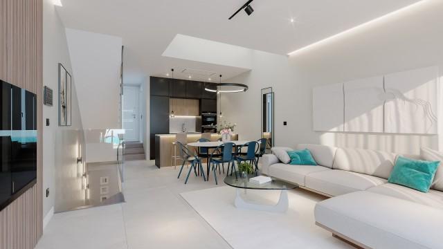 3 bed, 3 bath townthouses from 645,000 euros (excl. 10% VAT) Ready for occupation Q1 - 2027 This intimate collection of just 11 properties is designed to offer not just a residence, but an experience. A private sanctuary to captivate and inspire positivity in everyday life. It offers a harmonious blend of contemporary architecture intertwined with nature and uninterrupted sea views that promise an everyday escape into paradise.These impressive homes, set over 4 floors provide 3 bedrooms, 2.5 bathrooms, an ample basement area, private parking, garden, solarium and multiple terraces. The double height living room extends out onto the private terrace and garden offering spaces that are perfect for relaxation and entertainment. The fully fitted designer kitchen blends seamlessly into the elegant interior.