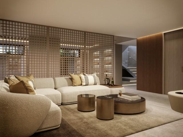 New Villa Gated Complex for sale in Marbella near Puerto Banus. Nestled within the illustrious enclave of Nueva Andalucia, this new gated development provides residents a luxurious escape that embodies the true essence of luxury living. With its privileged location in Nueva Andalucia, residents are granted convenient access to a plethora of nearby amenities, as well as sweeping views of the surrounding mountains and sea. The complex stands as a sanctuary of innovation and luxury, serving as a testament to the synergy of modern design and timeless elegance. Residents are granted an elevated lifestyle, with the finest elements of architecture, security and personalisation all combined. This visionary project redefines the concept of a modern urbanisation, offering an unparalleled lifestyle characterised by refinement, security and design ingenuity. Comprising a collection of 26 new build residences, the comple presents a harmonious blend of architectural brilliance and functional elegance. Designed by the visionary architect Ismael Mérida, the residences at this gated complex stand as modern marvels, each spanning three levels, including a solarium and basement, all united by a ground floor. Facing the cardinal directions of South, East, South East and West, the villas embrace the sun’s journey, casting enchanting hues and shadows throughout the day. What truly sets in this new developemnt apart is its innovative approach to vehicular circulation. Beneath the residences, an ingeniously designed avenue accommodates the flow of cars, as well as access to private carports and garages, discreetly hidden from sight. From an aerial perspective, what captures the eye is not a network of roads, but a network of pedestrian pathways and lush landscapes, with vehicles tucked away underneath connecting to garages and carports. This captivating feature not only enhances the aesthetic appeal but also fosters an atmosphere of serenity, giving rise to the aptly named. Immersed in the tranquility of a gated community with 24-hour security surveillance, this new villa complex ensures an environment of complete peace of mind. A security guard stationed at the entrance adds an additional layer of security and reassurance. A single entrance and exit point not only enhance security but also contribute to the sense of seclusion and privacy that defines this exclusive enclave. Residents can be confident that only they will have access to the community, and guests will be granted access upon approval. Diversity flourishes with three distinct typologies. The small and medium residences share a refined similarity, while the larger double-plot villas offer expansive living on a grand scale. Upgrade packages are available that will allow residents to tailor their villa to their precise desires. 23 of these homes boast a harmonious symmetry in size, providing a consistent and inviting atmosphere throughout the community. The 23 homes are divided into 2 typologies: Typology A designed by GC-Studio and Typology B designed by J. A. Flores. Adding an extra layer of distinction, 3 flagship Signature Villas stand as iconic landmarks of prestige, each exuding its own unique charm. These 3 villas are classified as Typology C, designed by Pedro Peña. All villas not only have their own bespoke amenities such as entertainment rooms, home cinemas and home gyms, but also have access to communal amenities such as an incredible gymnasium and state-of-the-art SPA with an indoor pool, hammam, sauna and ice bath. The Typology B villas, classified as medium-sized residences, showcase incredible interior design crafted by the renowned designer J. A. Flores. This category comprises four distinct subtypes: B1, B2, B3 and B4. Similar to Typology A, the primary differentiators among them are orientation, bedroom distribution per level and the option of a private carport or garage. Specifically, B1 and B3 subtypes provide residents with access to a private carport, while B2 and B4 subtypes grant access to a private garage.