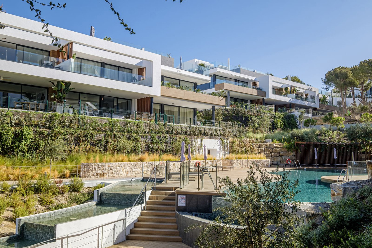 | Setting: Close To Golf, Close To Port, Close To Shops, Close To Sea, Close To Town, Close To Schools, Close To Marina, Urbanisation Orientation: South Condition: Excellent, New Construction Pool: Communal, Private Climate Control: Air Conditioning, Hot A/C, Cold A/C, U/F Heating Views: Sea, Mountain Features: Lift, Fitted Wardrobes, Private Terrace, Solarium, Gym, Sauna, Storage Room, Ensuite Bathroom, Jacuzzi, Double Glazing, Domotics Furniture: Optional Kitchen: Fully Fitted Garden: Communal Security: Gated Complex, Entry Phone, Alarm System Parking: Underground, More Than One, EV charge point Category: Luxury, Contemporary |