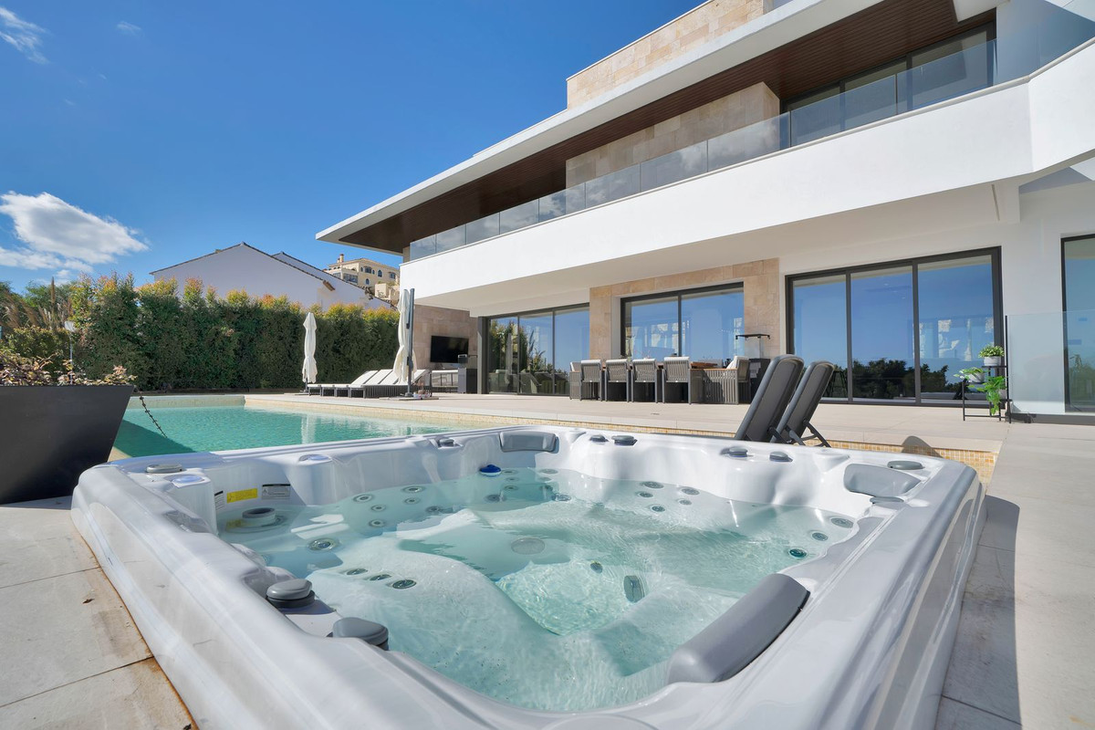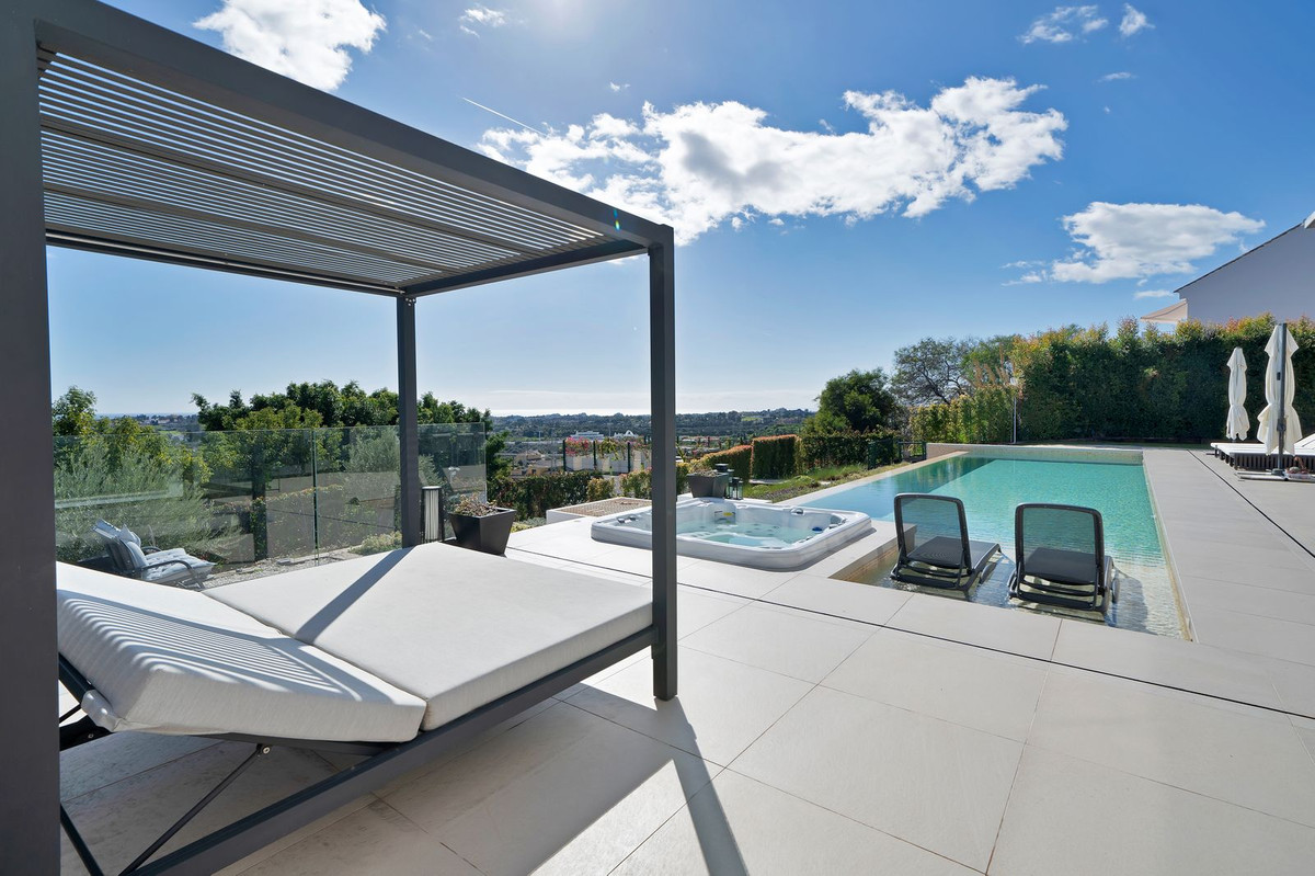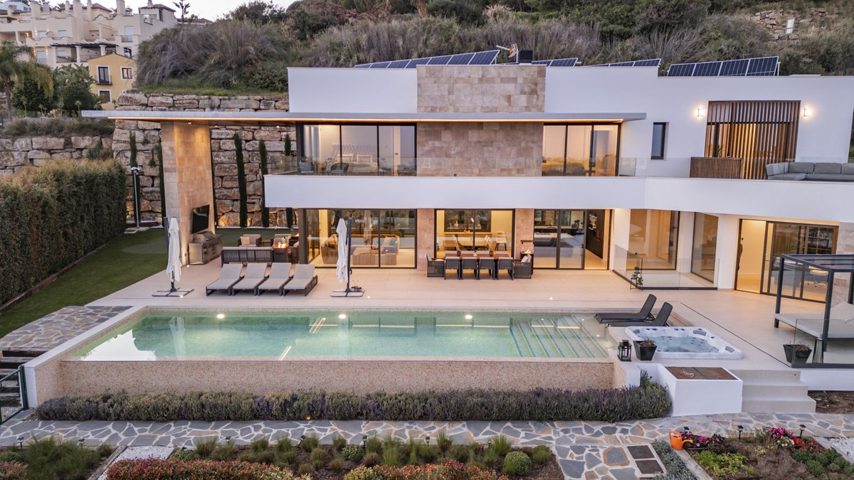 Setting: Close To Golf, Urbanisation Orientation: South Condition: Excellent Pool: Private, Heated Climate Control: Air Conditioning, Central Heating, U/F/H Bathrooms Views: Sea, Mountain, Golf, Country, Panoramic, Garden, Pool Features: Covered Terrace, Lift, Fitted Wardrobes, Private Terrace, Solarium, Satellite TV, WiFi, Gym, Sauna, Games Room, Guest Apartment, Guest House, Storage Room, Utility Room, Ensuite Bathroom, Jacuzzi, Barbeque, Double Glazing, Domotics, Day Care, Staff Accommodation, Basement, Fiber Optic Furniture: Fully Furnished Kitchen: Fully Fitted Garden: Private, Landscaped, Easy Maintenance Security: Gated Complex, Electric Blinds, Entry Phone, Alarm System, 24 Hour Security, Safe Parking: Underground, Garage, Covered, More Than One, Private Utilities: Electricity, Drinkable Water, Telephone, Photovoltaic solar panels Category: Distressed, Golf, Investment, Luxury, Contemporary