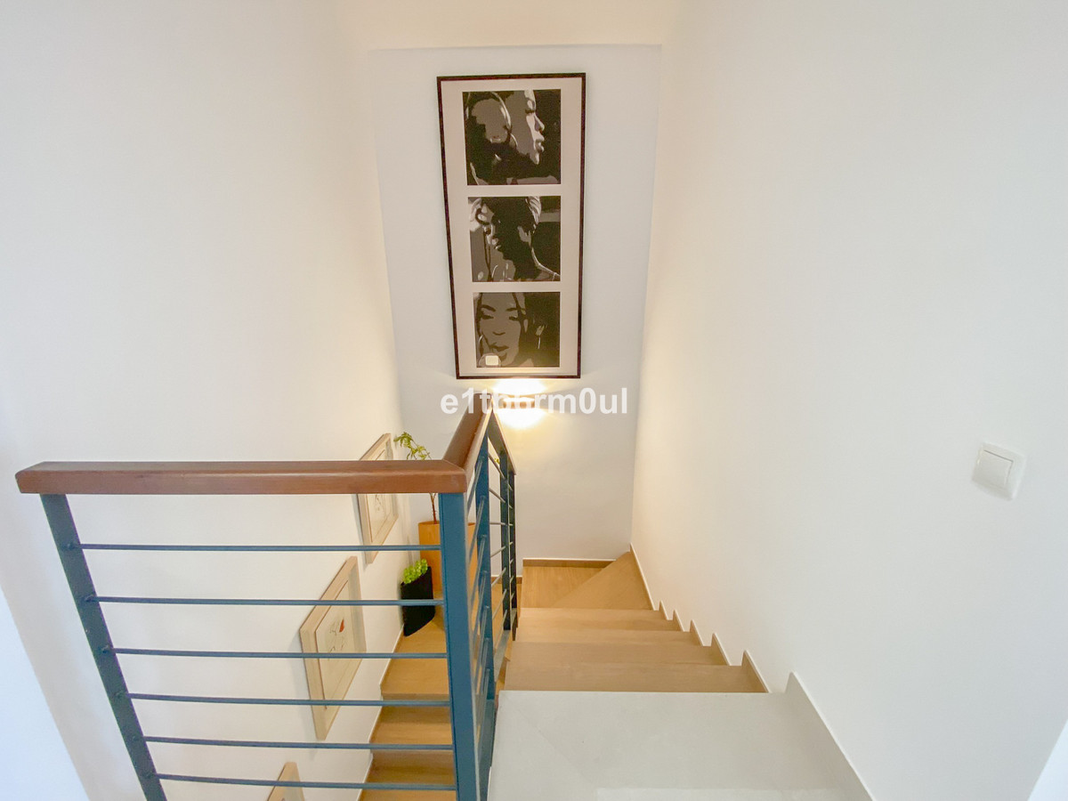 This luxury house with spectacular sea views is located in Terrazas de Cortesin near the beautiful town of Casares Playa, Málaga. It is 30 minutes to Casares Pueblo and only a few minutes to the beach. This property offers ample space for modern living. Bright and spacious living room with floor-to-ceiling windows that lead out onto a spectacular terrace perfect for relaxing and entertaining. The fully fitted kitchen is equipped with modern appliances, making it a delight for cooking enthusiasts, and has a separate utility room. The two bedrooms on the first floor are en-suites and enjoy spectacular open views, the master bedroom has a private terrace, the third en suite bedroom is conveniently found on the ground floor. The gated and fully secure community called "Sea Views" offers a communal garden and swimming pool as well as 24 hour security service. The property includes 2 parking spaces in the underground communal garage. Don't miss the opportunity to own this luxurious semi-detached house in such natural and beautiful surroundings, a must-see.