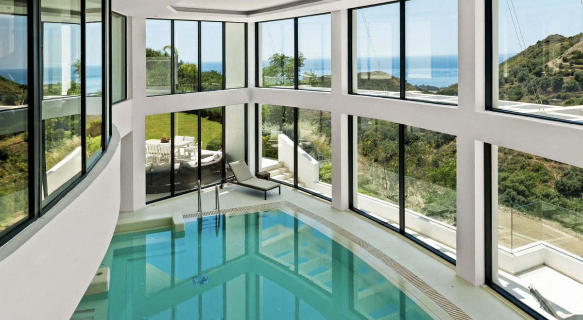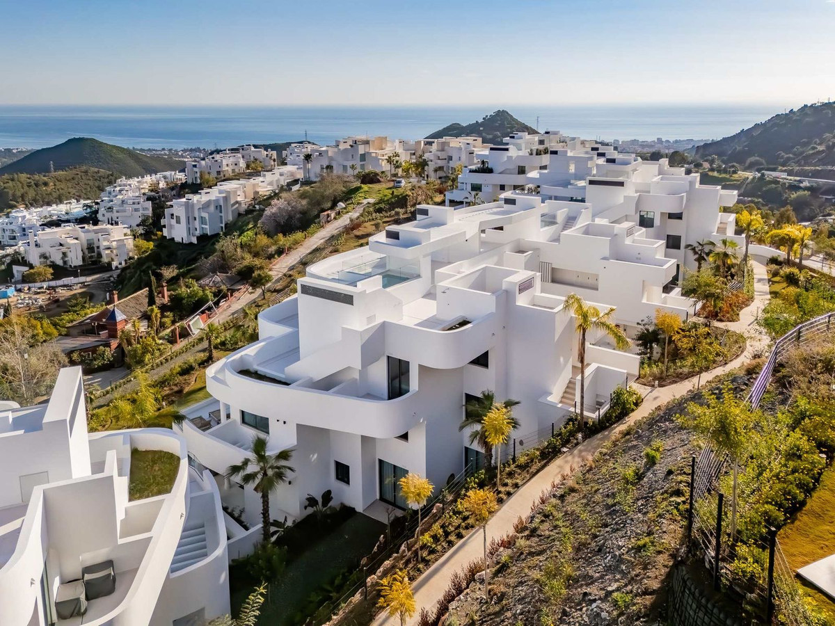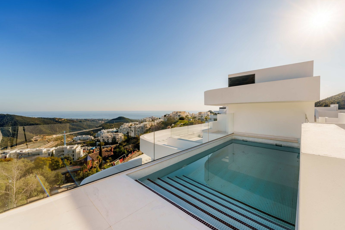 Setting: Close To Town, Close To Forest, Urbanisation Orientation: South Condition: Excellent, New Construction Pool: Communal, Private, Indoor, Heated Climate Control: Air Conditioning, Pre Installed A/C, Hot A/C, U/F Heating, U/F/H Bathrooms Views: Sea, Mountain, Panoramic, Forest Features: Covered Terrace, Lift, Fitted Wardrobes, Private Terrace, Solarium, WiFi, Gym, Sauna, Tennis Court, Ensuite Bathroom, Wood Flooring, Jacuzzi, Bar, Barbeque, Double Glazing, Domotics, Basement Furniture: Part Furnished Kitchen: Fully Fitted Garden: Communal, Landscaped Security: Gated Complex, Entry Phone, 24 Hour Security, Safe Parking: Underground Category: Luxury, Contemporary