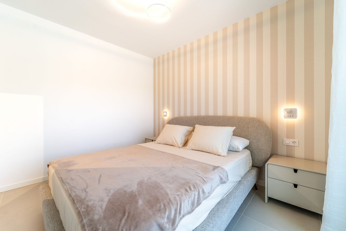 | Setting: Close To Sea Orientation: East Condition: Excellent, New Construction Pool: Communal Climate Control: Air Conditioning Views: Sea, Mountain, Garden, Urban Features: Lift, Fitted Wardrobes, Private Terrace, Gym, Storage Room, Utility Room, Ensuite Bathroom, Access for people with reduced mobility, Double Glazing Furniture: Not Furnished Kitchen: Fully Fitted Garden: Communal Security: Gated Complex, Entry Phone Parking: Underground Utilities: Electricity, Drinkable Water Category: Resale |