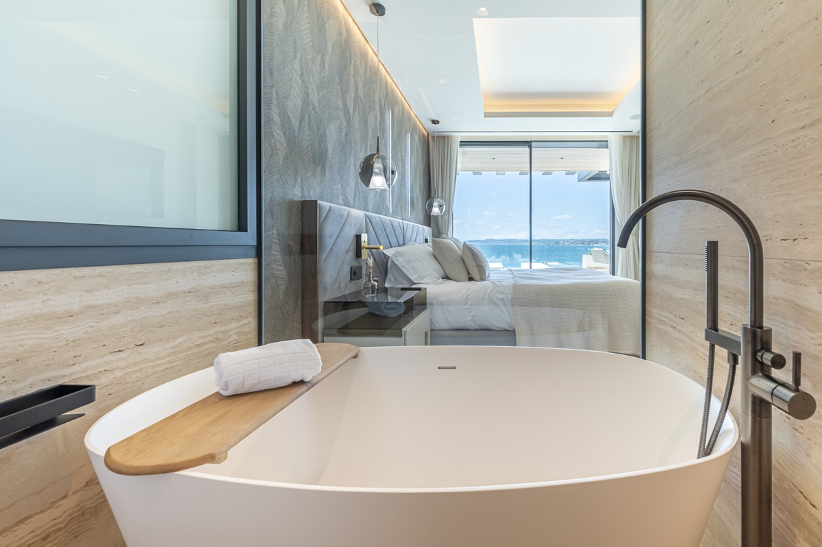 Setting: Beachfront, Beachside, Close To Port, Close To Shops, Close To Sea, Close To Town, Close To Schools Orientation: South Condition: Excellent Pool: Private, Indoor Climate Control: Air Conditioning, Central Heating Views: Sea, Panoramic Features: Covered Terrace, Lift, Fitted Wardrobes, Near Transport, Satellite TV, WiFi, Gym, Sauna, Guest Apartment, Storage Room, Utility Room, Marble Flooring, Jacuzzi, Double Glazing, Domotics, Fiber Optic Kitchen: Partially Fitted Security: Gated Complex, Electric Blinds, Entry Phone, Alarm System Parking: More Than One, Private Utilities: Electricity, Drinkable Water, Telephone Category: Beachfront, Luxury