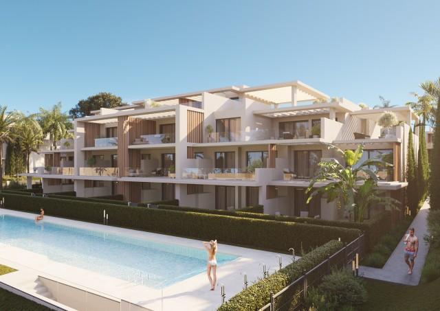 Completion of construction: Second quarter of 2027 A new construction project of 57 luxury apartments in the prestigious New Golden Mile, Estepona. It will consist of ground-floor apartments with large gardens, penthouses with solarium and duplex penthouses, communal green areas, swimming pools, underground parking, storage rooms, and elevators. With 7 layouts from 2 to 4 bedrooms, each apartment has incredible sea views, 2 parking spaces, and 1 storage room included in the price. Each home has been designed with great detail, featuring a fully equipped kitchen and bathroom, as well as bedrooms with built-in wardrobes, which ensure practicality and comfort in daily life. Discover the essence of contemporary luxury, where luxury living is redefined with an exclusive focus on a prime location, cutting-edge architecture, uncompromising security, absolute privacy, and a firm commitment to sustainability. This exclusive south- and west-facing garden apartment offers comfortable and modern living just steps from the beach. Located in a well-maintained gated community, it features a private garden, communal pool, gym, paddle tennis court, and tennis court. The home features a fitted kitchen, hot/cold air conditioning, underfloor heating, built-in wardrobes, and an en-suite bathroom. It includes two underground parking spaces, a storage room, and a basement. Overlooking the garden and pool, this apartment stands out for its light, privacy, and proximity to shops, golf courses, and sports facilities, making it ideal for year-round enjoyment. Penthouse, Walking distance to beach, Fitted Kitchen, Underground parking, Communal Pool, Garden: Private and Community, Facing: South and West Views: Garden, Pool Features: 2 Parking Places, 5-10 minutes to Golf Course, 5-10 minutes to shops, Air Conditioning Hot/Cold, Basement, Community gym, Conveniently Situated for Golf, Conveniently Situated Tennis, Double glazing windows, En suite bathroom, Fitted Kitchen, Fitted Wardrobes, Garden and Pool View, Gated Complex, Newly Built, Padel court, Pre-installed Air-Conditioning, Private Terrace, Solarium, Storage room, Tennis Court, Underfloor Heating, Underground parking, Walking distance to beach, Walking distance to shops, Well maintained community