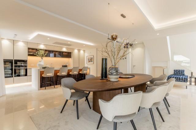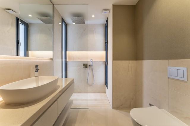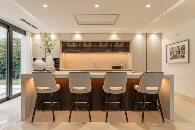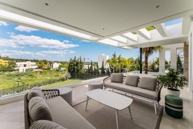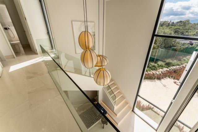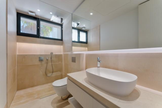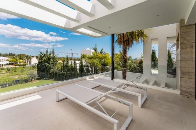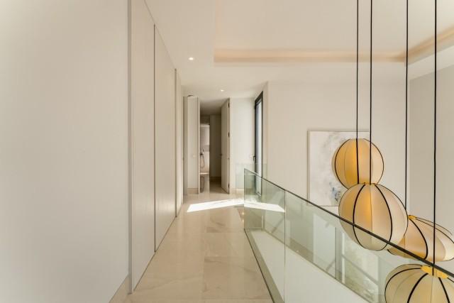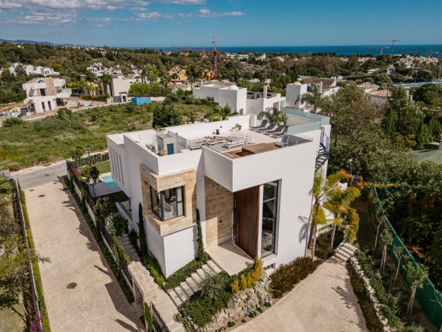 Discover this stunning 5-bedroom contemporary villa located in Marbella’s prestigious Golden Mile, nestled within an exclusive gated community. Designed in 2024 by a renowned local architect, this luxurious property combines modern elegance with breathtaking panoramic views of the sea and mountains, offering an unrivaled living experience. Spanning three meticulously designed levels, the villa boasts a built area of 471 m² and 247 m² of terraces, perfectly blending comfort and sophistication. The five en-suite bedrooms are private sanctuaries, of which three bedrooms are located on the first floor, with each with direct access to spacious terraces that embrace the indoor-outdoor lifestyle. The main floor features a seamless open-plan layout with a sleek modern kitchen, elegant dining area, and a cozy fireplace, all bathed in natural light. Outside, a lush garden, serene private pool, and covered porch terrace provide the perfect setting for relaxation and entertaining guests. The first floor hosts the master suite, which includes a luxurious bathroom and a well-appointed dressing room. Two additional bedrooms on this level also enjoy terrace access, offering picturesque views of the surrounding landscape. The rooftop terrace is a standout feature, designed for ultimate enjoyment with a jacuzzi, and breathtaking views of Marbella’s coastline and mountains, making it ideal for entertaining or unwinding in style. The lower level of the villa enhances its versatility, accommodating two additional bedroom suites that are perfect for guests or extended family. This space also offers ample room that can be customized as a gym, home cinema, or games room, ensuring the property caters to every lifestyle need. Conveniently located near essential services, upscale amenities, and world-class dining and shopping, and with 12-hour security, this villa represents a unique opportunity to enjoy an unparalleled lifestyle in Marbella’s coveted Golden Mile.