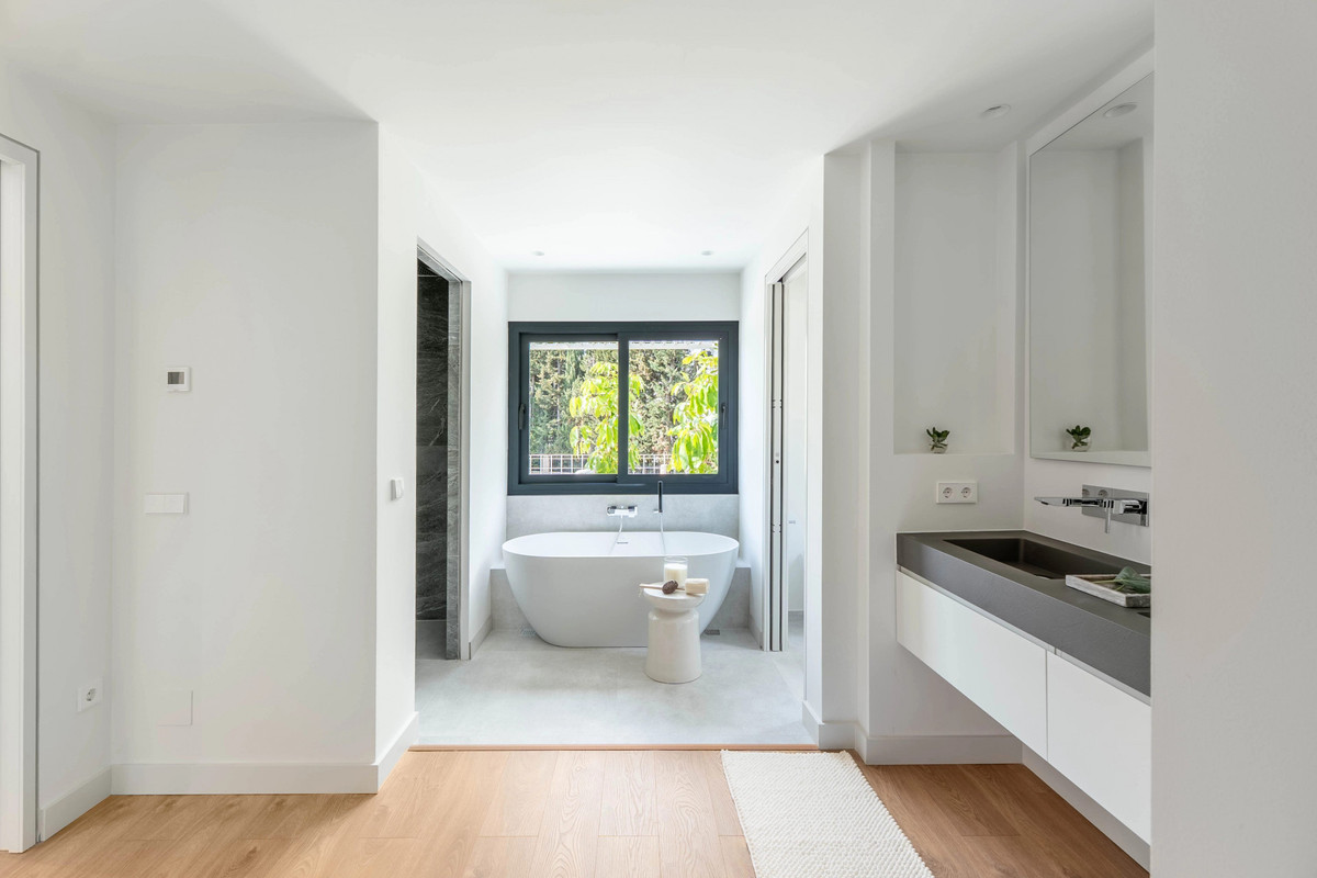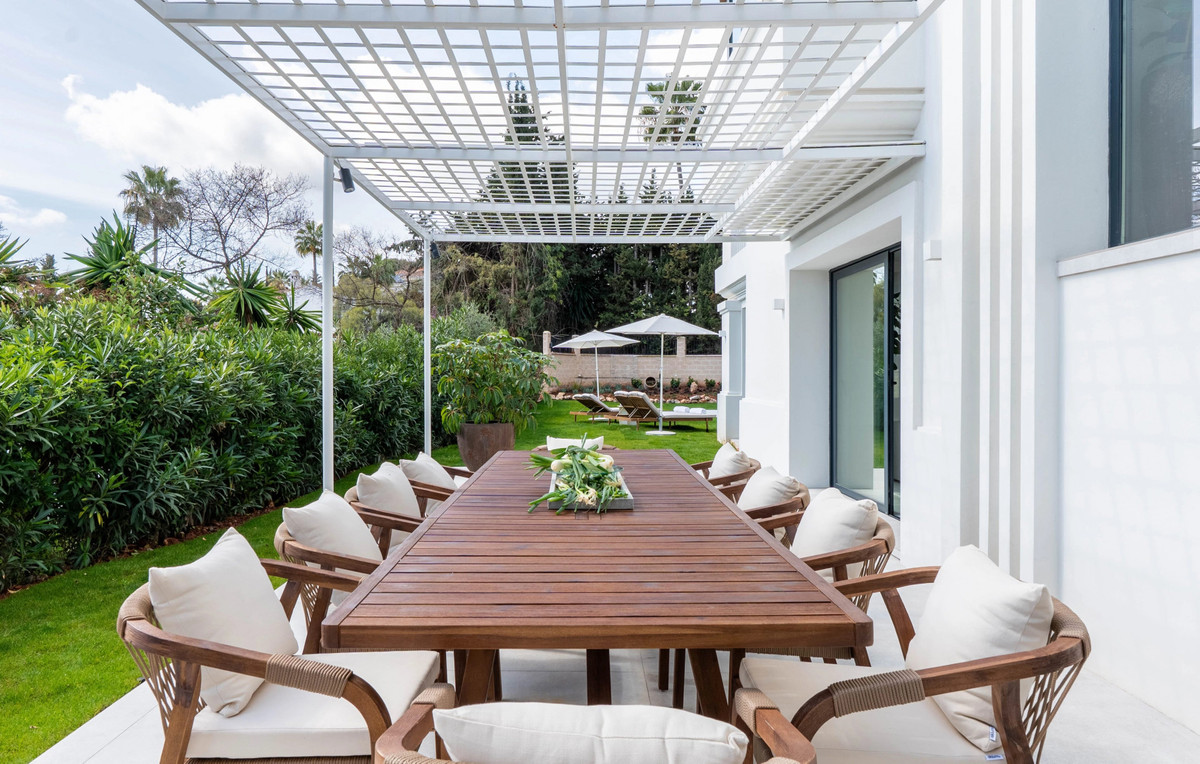 Welcome to an exquisite residence in the heart of Nueva Andalucia, where modern elegance blends effortlessly with Mediterranean charm. Perfectly positioned just five minutes from the renowned Puerto Banús, this beautifully reformed villa offers the ultimate combination of sophistication, comfort, and convenience. With breathtaking sea views, expansive outdoor areas, and luxurious interiors, the home is crafted for those seeking the finest in contemporary living. Upon entering, you’re welcomed into a bright, open-plan layout that seamlessly connects indoor and outdoor spaces. To the left, a sleek, fully fitted kitchen and dining area provide an ideal setting for cooking and entertaining. To the right, a stylish lounge area invites relaxation, featuring elegant furnishings and floor-to-ceiling glass doors that open onto sun-soaked terraces and a lush, landscaped garden. The outdoor spaces are designed for both leisure and entertainment, with a private swimming pool, multiple lounge zones, and a covered terrace perfect for al fresco dining. The manicured garden offers a peaceful atmosphere with picturesque views of the surrounding hills and the Mediterranean Sea—ideal for morning coffee or evening gatherings under the stars. Upstairs, the property features three additional spacious bedrooms, each designed with comfort and tranquility in mind. Every room includes a private en-suite bathroom finished to a high standard. The principal suite is a true retreat, offering a generous layout, a walk-in wardrobe, and a large private terrace with breathtaking panoramic sea views. Situated in the prestigious area of Nueva Andalucia, the home is surrounded by top-tier golf courses, luxury shopping, and exceptional dining options. It’s just moments from Marbella’s famous beaches and the glamour of Puerto Banús, with its upscale boutiques, vibrant nightlife, and exclusive beach clubs. Proximity to leading international schools and excellent transport connections makes this villa ideal for both permanent living and high-end holiday escapes.