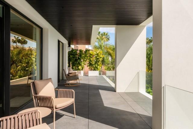 Tucked away in one of Marbella’s most sought-after beachfront communities, just steps from the beach, Marbella Club, and the Old Town. A gated retreat embraced by mature pines and lush greenery, offering privacy and a serene atmosphere. Inside, warmth meets innovation—Murano chandeliers, solid brass handles, and intricate moldings add character, while a state-of-the-art home automation system controls lighting, security, and even a rotating garage platform, all easily managed from an app. Spanning four levels, all connected by a champagne-gold lift, the villa is designed for seamless living. A double-height entrance leads to open-plan spaces with wooden-accented ceilings and fluid indoor-outdoor connections. The Siematic kitchen, fitted with Gaggenau appliances, features sliding doors for adaptable use. Floor-to-ceiling windows flood interiors with natural light and open to the landscaped garden. For relaxation and entertainment, the villa offers a heated 17m pool with an anti-algae solar cover and an outdoor kitchen. The rooftop is perfect for open-air dining, with a full kitchen, jacuzzi, and panoramic views of the sea and La Concha. The lower level includes a gym with Technogym equipment, a steam and Finnish sauna, a massage area, hydromassage, a climate-controlled wine cellar, and a kitchenette. The garage features a rotating platform and EV charging stations.