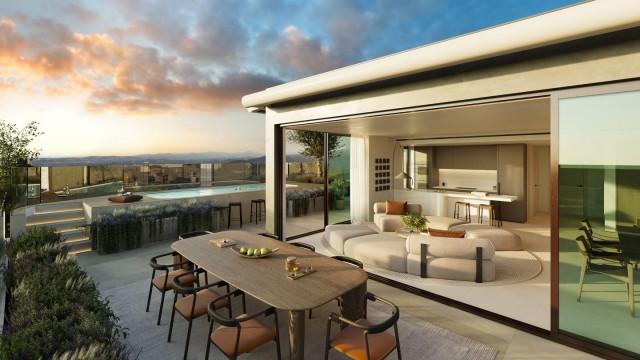 Completion of the 4th quarter of 2027 An essential connection with nature and the sea. This development is designed to connect with the essential elements of life: water and nature. This exclusive development boasts over 7,000 m² of lush green areas and spectacular waterfalls, creating an ideal setting to relax and enjoy the extraordinary views of the Mediterranean Sea. This wonderful combination will make the long-cherished dream of living in a heavenly setting come true. The development offers 233 one-, two-, and three-bedroom homes, with a variety of typologies to suit the most discerning tastes. These include ground-floor apartments with private pools and gardens designed to minimize environmental impact, utilizing drip irrigation and native plants, shrubs, and trees. There are also apartments with stunning panoramic sea views, and wonderful penthouses with magnificent views and private pools, providing the ultimate in luxury and exclusivity. The southwest orientation of this development not only offers stunning views but is also a testament to sustainability. This orientation allows the homes to be naturally heated year-round, maximizing sunlight and cross-ventilation. This residence is not just a place to live; it's a lifestyle that combines luxury, nature, and sustainability in perfect harmony. Come and discover how your dreams can come true in this Mediterranean paradise. Apartment, Community, Equipped Kitchen, Underground parking, Pool: Communal and Private, Garden: Private and Community, Facing: Southwest Views: Countryside, Courtyard, Mountains, Open views, Panoramic, Sea Features: Air Conditioning Hot/Cold, Community areas, Community Garden, Community gym, Community Pool, Completely Equipped Kitchen, Contemporary style, Exclusive Development, Fitted Wardrobes, Gated Complex, Guest Wardrobe, Lift, Luminous, Mountain View, Newly Built, Private Terrace, Sauna, Sea Views, Solar Panels, Storage room, Stylish Accommodation, Well maintained community