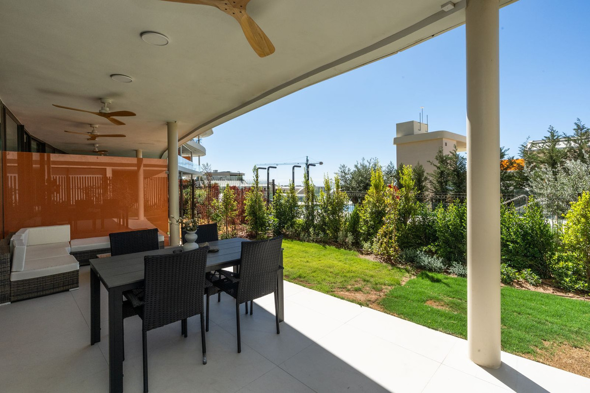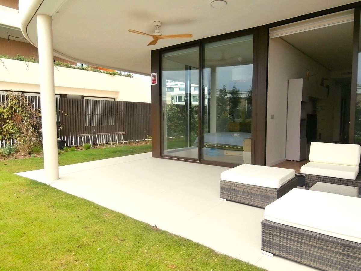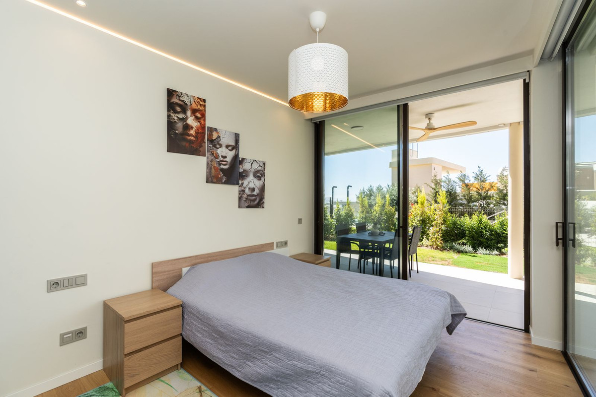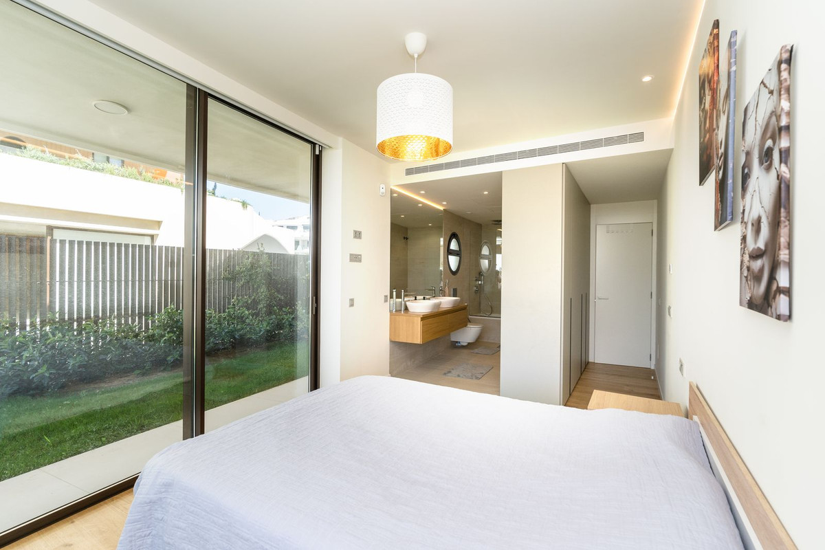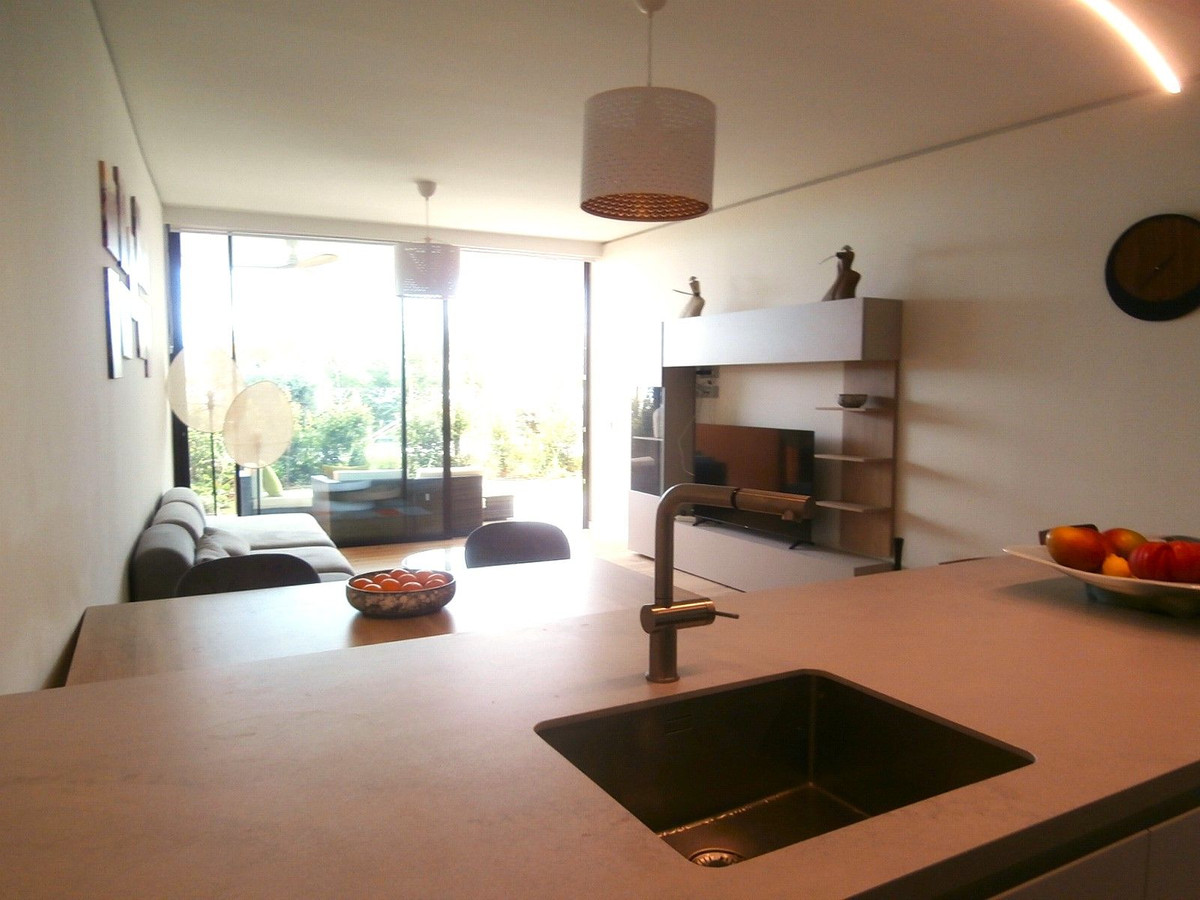 Setting: Urbanisation Orientation: South Condition: Excellent, New Construction Pool: Communal Climate Control: Air Conditioning Views: Garden, Pool Features: Covered Terrace, Fitted Wardrobes, Private Terrace, WiFi, Storage Room, Double Glazing Furniture: Optional Kitchen: Fully Fitted Garden: Private Security: Gated Complex, Entry Phone, Alarm System, 24 Hour Security Parking: Underground, More Than One Category: Contemporary