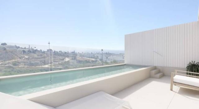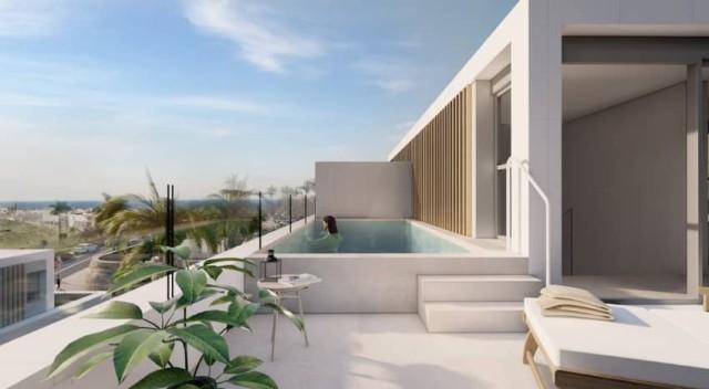 For this new and exclusive development of 10 semi-detached villas in Estepona from 730.000 euros (excl. VAT) incl. 2 parking spaces Ready for occupation 2027 The developer chose a plot with beautiful views of the sea, golf course, and mountains and consists of only 10 semi-detached villas with 4 bedrooms, 3 or 4 bathrooms, 1 or 2 toilets, and an office that can be used as a laundry room. The corner villas have their own gardens and private saltwater pools. The central villas have a rooftop pool. The open, functional spaces are undoubtedly the focal points of the homes, connecting us to the terraces and their beautiful views of the sea, golf course, and mountains. The villas are well-equipped to the highest standards, providing every comfort, including an aerothermal air conditioning system. High quality porcelain floors. Fully equipped kitchen with Siemens or similar appliances. Hot and cold air conditioning with aerothermal system. Private garden with pool or roof terrace with private pool. Master bathroom en suite. Built-in wardrobes in all bedrooms. Large windows. Private parking.