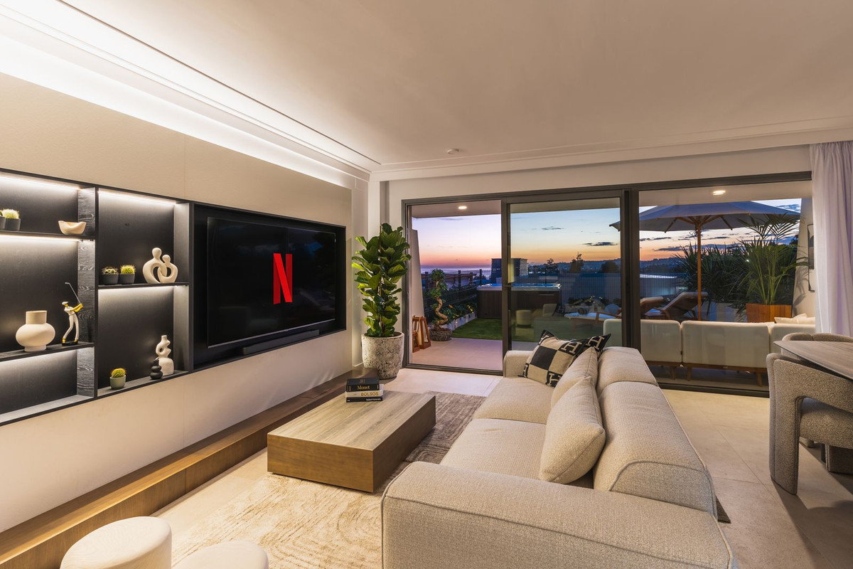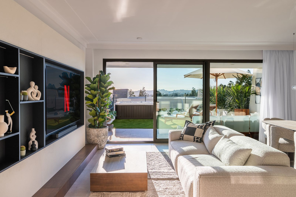 | Setting: Close To Golf, Close To Port, Close To Shops, Close To Sea, Close To Town, Close To Schools, Close To Forest, Close To Marina, Urbanisation Orientation: South, South West, West Condition: Excellent, New Construction Pool: Communal Climate Control: Air Conditioning, Hot A/C, Cold A/C, Central Heating, U/F/H Bathrooms Views: Sea, Mountain, Panoramic, Urban, Forest Features: Covered Terrace, Fitted Wardrobes, Private Terrace, Satellite TV, WiFi, Gym, Sauna, Paddle Tennis, Tennis Court, Utility Room, Ensuite Bathroom, Wood Flooring, Jacuzzi, Bar, Double Glazing, Domotics, 24 Hour Reception, Fiber Optic Furniture: Fully Furnished Kitchen: Fully Fitted Garden: Private, Easy Maintenance Security: Gated Complex, Electric Blinds Parking: Underground, Garage, Covered, Private Utilities: Electricity Category: Golf, Holiday Homes, Investment, Luxury, Contemporary |
