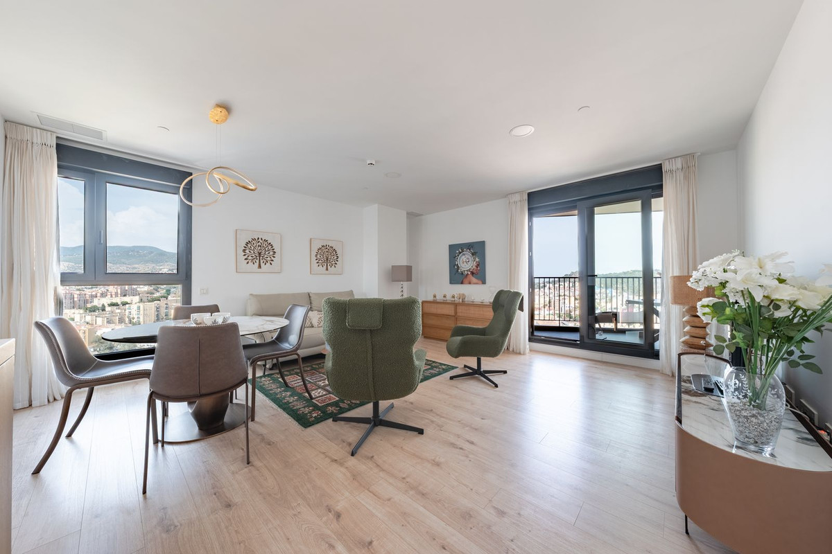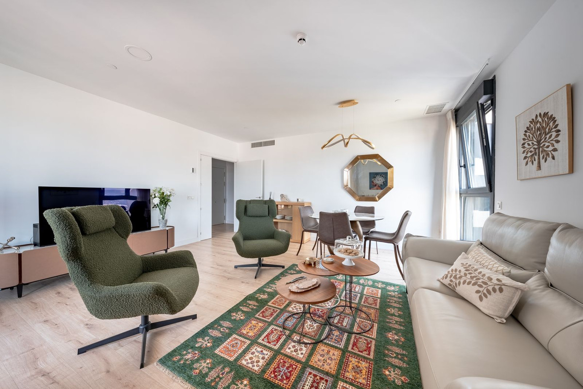 Step into elevated elegance in the heart of Malaga with this exquisite three-bedroom, two-bathroom residence located on the twenty-fourth floor of the iconic AQ Urban Sky South Tower. Soaring above the city, this contemporary sanctuary offers sweeping panoramic views that stretch from the shimmering Mediterranean Sea to the historic charm of La Alcazaba, capturing the very essence of coastal sophistication. Designed for the modern lifestyle, this home embodies clean lines, refined finishes, and open-plan living spaces bathed in natural light. The expansive windows invite the outside in, creating a seamless connection with the vibrant urban skyline and tranquil sea beyond. Every detail has been thoughtfully considered to offer comfort, functionality, and timeless design. Residents of the South Tower are welcomed into a world of premium amenities. From the rooftop infinity pool that seems to merge with the horizon, to the lush landscaped gardens that offer peaceful retreats, every space is crafted for leisure and inspiration. The fully equipped gym, coworking areas, and private cinema add layers of convenience and luxury, transforming everyday living into something extraordinary. Nestled just moments from Malaga’s historic centre, this address places you within easy reach of renowned schools, hospitals, shopping centres, and cultural treasures. With pedestrian-friendly zones and dedicated bike lanes, the neighbourhood invites exploration and a seamless connection to city life. This residence also includes a private underground parking space and a secure storage room, ensuring that every practical need is met with ease and style. With all building services accessible through a dedicated resident app, comfort and control are truly at your fingertips. This is more than just a home. It is a statement of elevated living, where the rhythm of the city meets the calm of the sea, and where contemporary elegance finds its highest expression.