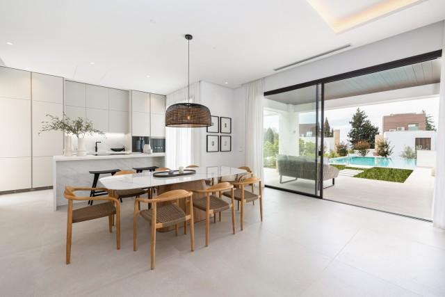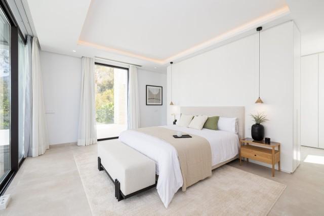 Brand new furniture included. Welcome to this villa within a newly completed (2023) development nestled in the prestigious area of Marbella's Golden Mile. This exclusive gated community, designed by the renowned architect Ernesto Palanco, offers a serene oasis of greenery and peace, yet is conveniently close to the promenade and beach. It is a private community consisting of only 15 distinct villas. With 24-hour security guards and concierge services, residents can enjoy the utmost privacy and security. Situated between parks and within walking distance of various amenities, it is a 15-minute walk to La Fontanilla Playa and its promenade, a 20-minute walk to Marbella's Old Town, and a short drive to the Marbella Club Hotel, Puente Romano, and Swans International School. And being positioned on the highest plot in the community, this villa offers a prime spot. The villa features three levels with lift access. The ground floor boasts an open-plan living room with an elegant kitchen equipped with Gaggenau appliances, a guest bedroom with an en-suite bathroom, and a guest toilet. The living room seamlessly connects to the outdoor area and overlooks the swimming pool (heated). On the second floor, the master suite includes a spacious terrace, a dedicated wardrobe area, and a luxurious bathroom with floor-to-ceiling windows. Two additional en-suite bedrooms offer generous bathrooms, ample wardrobe space, and equally elegant furniture. The basement is an absolute highlight, featuring a cinema room, winery, steam and sauna room, shower, workout room, lounge area, laundry room, and guest toilet. The solarium includes a jacuzzi and outdoor kitchen, perfect for entertaining and relaxation. From there, you can enjoy stunning views of the sea and the mountain. The villa is fully controlled by a Smart Home panel, providing modern convenience and control over the property's various features. Positioned on the highest plot in the community, this villa offers prime spot and privacy. The garage has ample space for several cars. Villa, Walking distance to the beach, Fitted Kitchen, Parking: Garage, Pool: Private, Garden: Private, Facing: South and West Views: Garden, Mountains, Pool, Sea Features: 2 Parking Places, 24 Hour Reception, 24 hrs Security System, Air Conditioning Hot/Cold, Barbecue, Central Heating, Close to all Amenities, Close to schools, Contemporary style, Covered Terrace, En suite bathroom, Excellent Condition, Fireplace, Fitted Kitchen, Fitted Wardrobes, Games Room, Garage, Garden and Pool View, Gated Complex, Guest Wardrobe, Gym, Heated Outdoor Pool, Intelligence System, Investment Property, Jacuzzi, Laundry room, Lift, Luminous, Luxury Fittings, Near amenities, Near Church, Near Transport, Optical fiber / ADSL, Private pool, Private Terrace, Sauna, Sea Views, Smart Home, Solar Heated Water, Solarium, Solarium and Jacuzzi, Sought After Area, Spacious Accommodation, Storage room, Stylish Accommodation, Underfloor Heating, Underfloor Heating-bathrooms, Utility Room, Walking distance to beach, Walking Distance to Cafés, Walking distance to rest., Walking distance to shops, Walking distance to t. centre, Wine Cellar