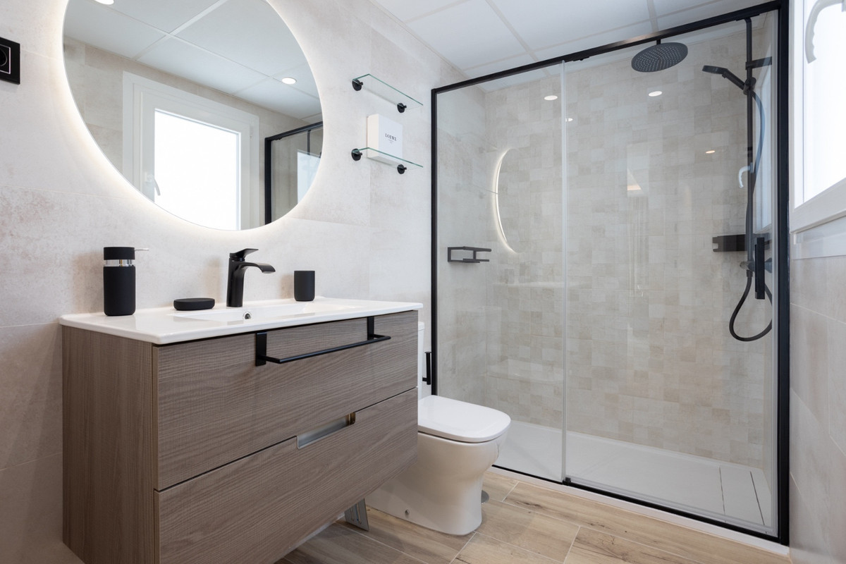 Apartment Albatros II is a bright two-bedroom, two-bathroom home in La Campana. The apartment features an open-plan living and dining area that flows into a fully equipped kitchen. Large windows and a south-facing layout fill the space with sunlight all day. The home includes a secure underground parking space and a separate laundry room for everyday convenience. Both bedrooms open to a wide terrace that is also accessible from the living room. The master bedroom has an ensuite bathroom with a walk-in shower, while the second bedroom sits beside a modern guest bathroom. Clean design and neutral tones create a calm and welcoming atmosphere. Residents enjoy access to a rooftop pool with panoramic views. The apartment is close to shops, cafés and transport links. Apartment Albatros II offers easy living in a vibrant area—perfect for a permanent home, a holiday retreat or a strong investment opportunity in Marbella’s sought-after La Campana neighbourhood.