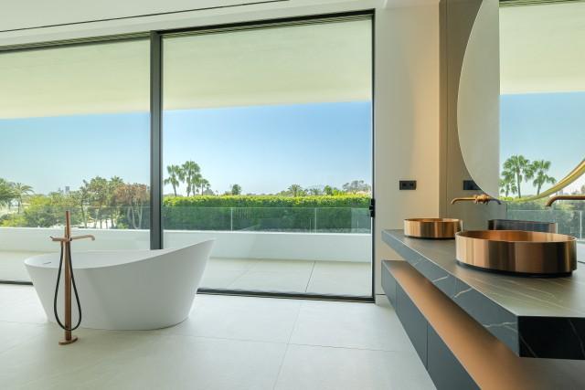 Contemporary Semi-Detached Villa in Gated Complex – Marbella’s Golden Mile We are pleased to present this exceptional semi-detached villa, located within an exclusive gated community on Marbella’s iconic Golden Mile — one of the most desirable and prestigious addresses on the Mediterranean coast. Just 250 metres from the beach and within easy walking distance to the luxurious Puente Romano and Marbella Club hotels, this villa offers the perfect blend of refined living, coastal charm, and urban convenience. Modern Elegance Across Four Luxurious Levels Built to the highest standards, this west-facing property enjoys all-day sun and delightful views over the communal swimming pool, landscaped gardens, and the shimmering Mediterranean Sea beyond. The villa’s contemporary architecture is complemented by carefully selected high-quality materials, offering both functionality and timeless elegance. Ground Floor: A bright entrance hall leads into a spacious open-plan living and dining area, seamlessly connected to a designer kitchen fitted with state-of-the-art Gaggenau appliances. Large sliding doors open onto a generous private terrace and landscaped garden – ideal for entertaining or unwinding under the Marbella sun. First Floor: Two beautifully appointed en-suite bedrooms boast floor-to-ceiling windows, natural oak flooring, and luxurious Porcelanosa bathrooms, creating an atmosphere of calm and sophistication. Rooftop Solarium: One of the villa’s most outstanding features is the private rooftop terrace with panoramic views and a heated plunge pool – the ultimate setting for sunbathing, sunset cocktails, or evening gatherings. Lower Ground Level: This versatile space currently serves as an additional living area but can easily accommodate a third bedroom and bathroom. A private garage with capacity for three vehicles, a machine room, and ample storage areas further enhance practicality and investment value. Unbeatable Location with Year-Round Appeal Set within a secure and well-maintained gated development, this home is just moments from fine dining, designer boutiques, upscale beach clubs, and a variety of leisure amenities. Whether you’re seeking a stylish permanent residence, a luxurious holiday retreat, or a high-performing rental investment, this property ticks every box. Key Features: Four levels of refined contemporary design West-facing orientation with sea, pool, and garden views Open-plan living with Gaggenau-equipped designer kitchen Two en-suite bedrooms with oak flooring and Porcelanosa bathrooms Rooftop solarium with heated private plunge pool Lower ground with potential for third bedroom, gym or cinema room Private garage for three vehicles and multiple storage areas Secure gated community just 250m from the beach Walking distance to Puente Romano, Marbella Club, shops, and restaurants An Outstanding Opportunity in a World-Class Location Rarely does a home of this quality, location, and price point become available on Marbella’s Golden Mile. Early viewing is highly recommended to fully appreciate the lifestyle, comfort, and investment potential this remarkable villa has to offer.