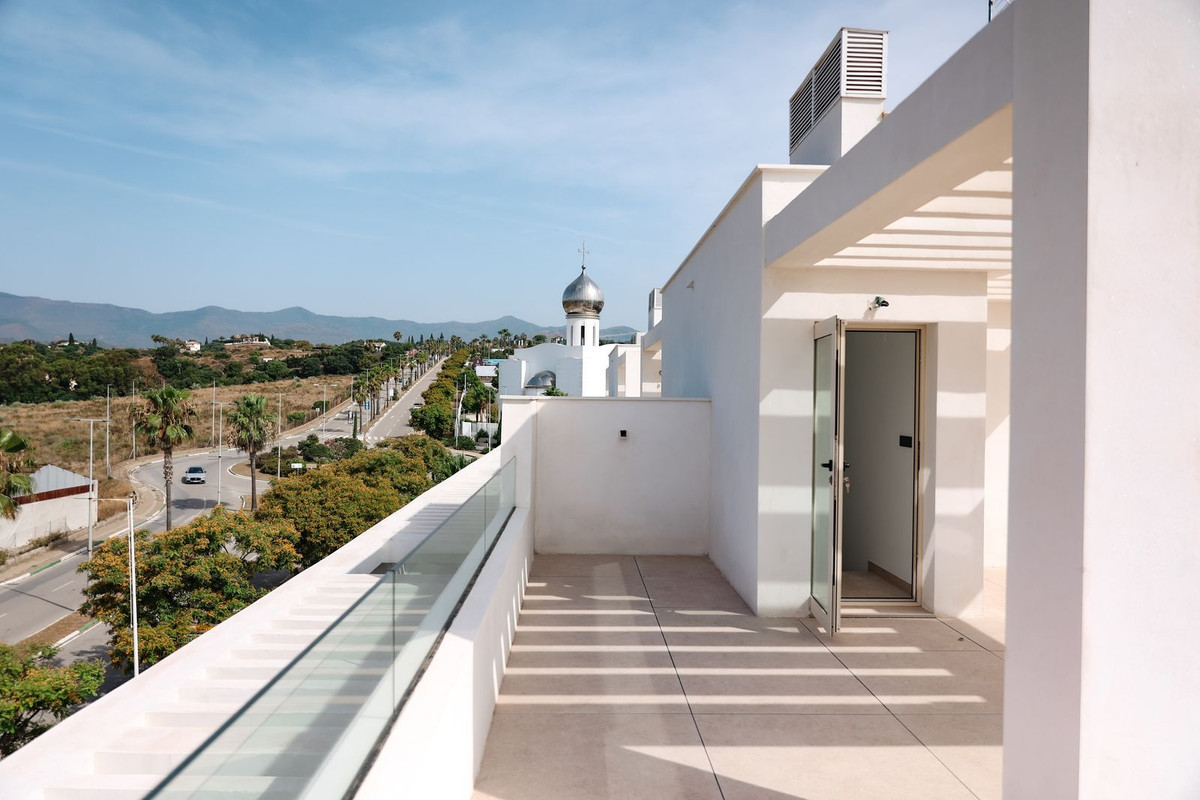 This elegant duplex penthouse with stunning sea views is located in one of the most promising areas of the Costa del Sol. Just minutes from the beach, it offers a strategic location that combines peace and privacy with excellent access to Estepona, Marbella, and all essential services. It is also very close to top international schools, including the prestigious Atlas American School. The property is spread over two floors and features a smart layout with double terraces on the main level: one offering open sea views, and the other overlooking the mountains and the communal pool. The bright and spacious living-dining area is filled with natural light, complemented by three bedrooms, all with direct access to the terraces, and two full bathrooms. Upstairs, a private rooftop solarium offers spectacular panoramic sea views — the perfect space to relax or entertain outdoors. Built with top-quality materials and premium finishes, this penthouse stands out for its brightness, privacy, and energy efficiency, thanks to an advanced aerothermal system. It includes a private double garage and storage room. A unique new-build property that combines smart design, modern features, and an unbeatable location — ideal as a permanent residence or as a solid investment in a high-growth area.