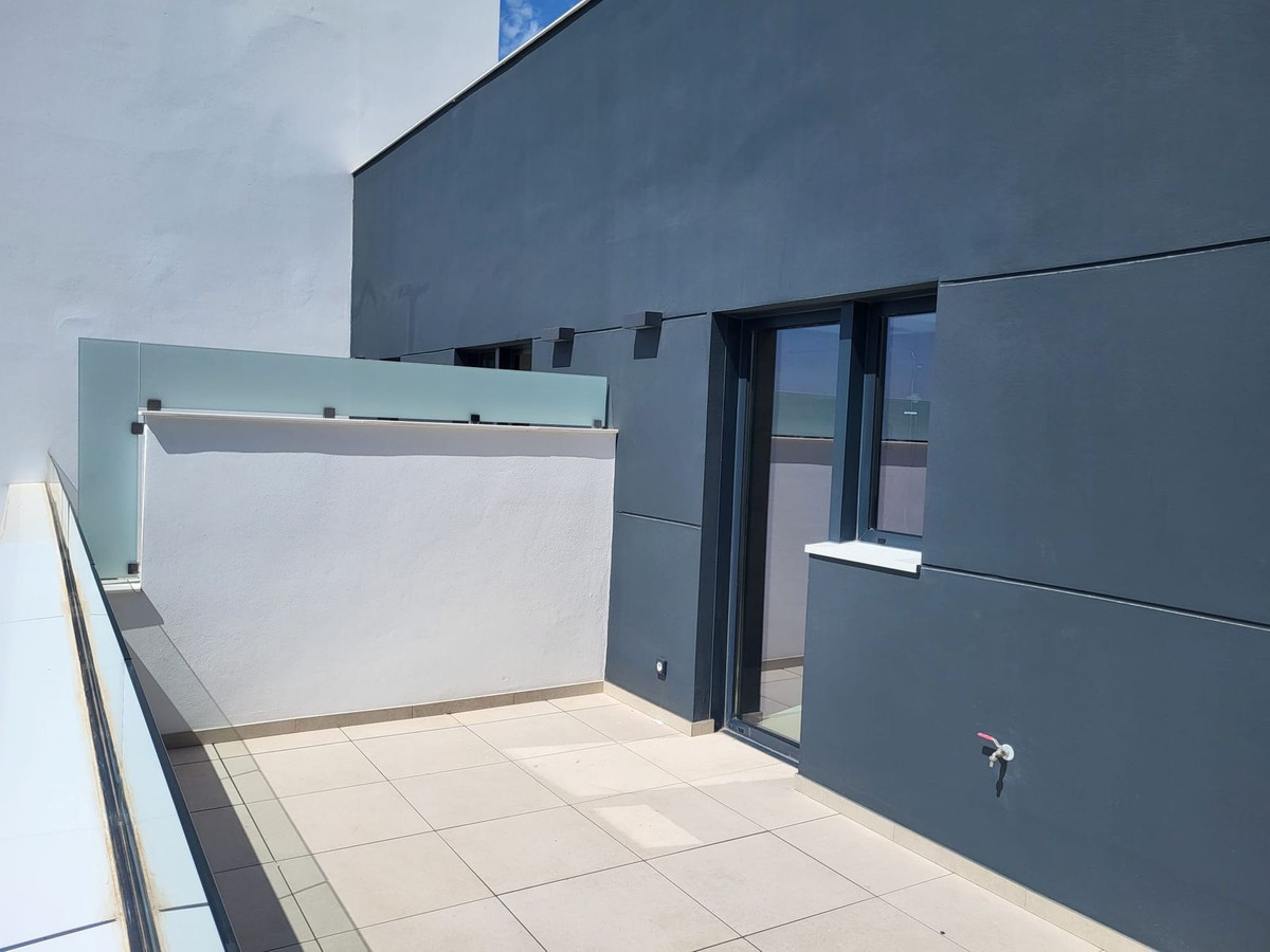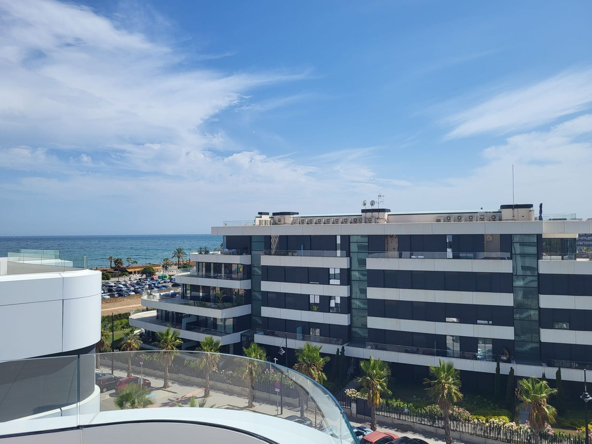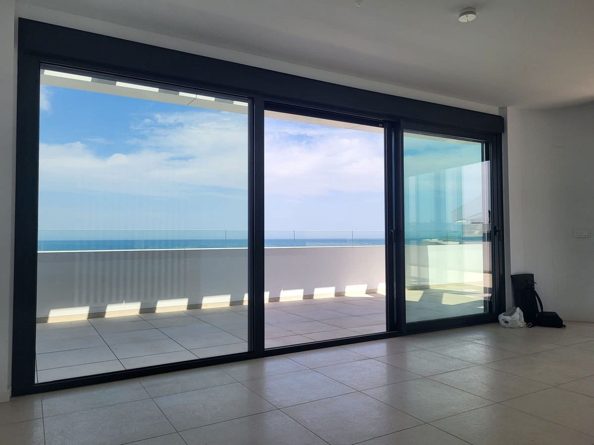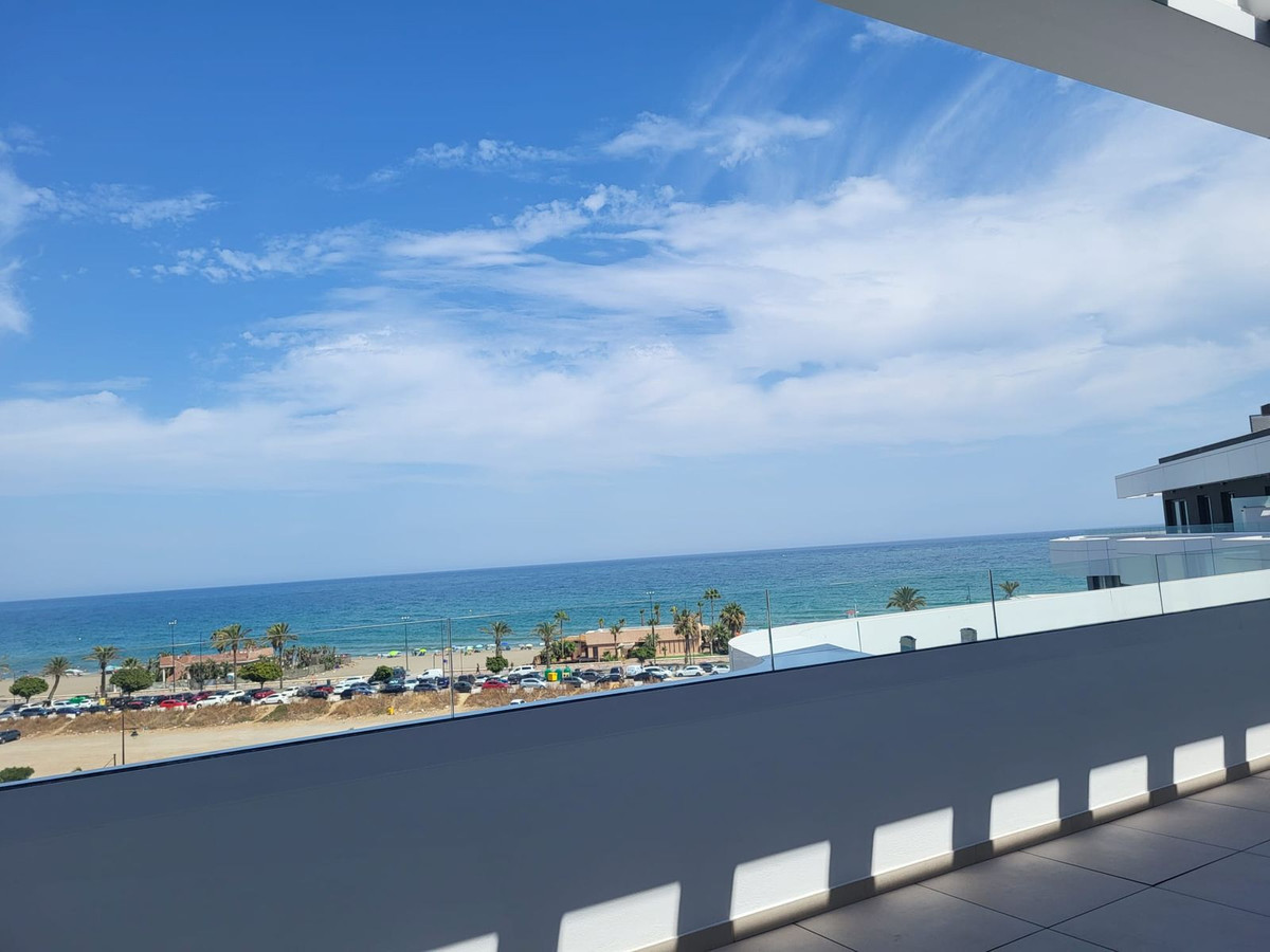 Penthouse, Playamar, Costa del Sol. 2 Bedrooms, 2 Bathrooms, Built 100 m², Terrace 150 m². Setting : Beachfront, Beachside, Close To Sea, Urbanisation, Front Line Beach Complex. Orientation : South. Condition : Excellent, New Construction. Pool : Communal. Climate Control : Air Conditioning. Views : Sea, Beach, Port, Panoramic, Garden, Pool. Features : Lift, Fitted Wardrobes, Near Transport, Private Terrace, Double Glazing, Fiber Optic. Furniture : Not Furnished. Kitchen : Fully Fitted. Garden : Communal. Security : Gated Complex, Entry Phone. Parking : Underground, More Than One. Category : Contemporary.