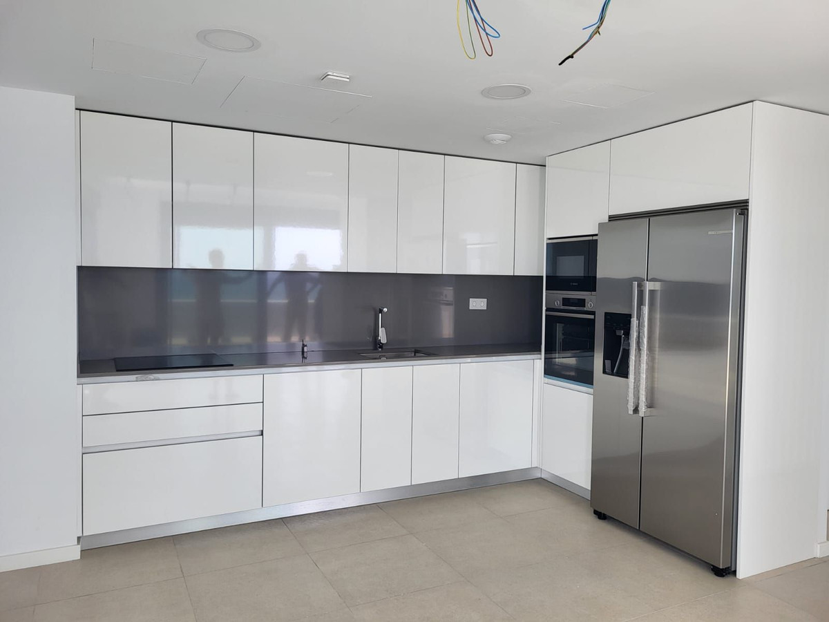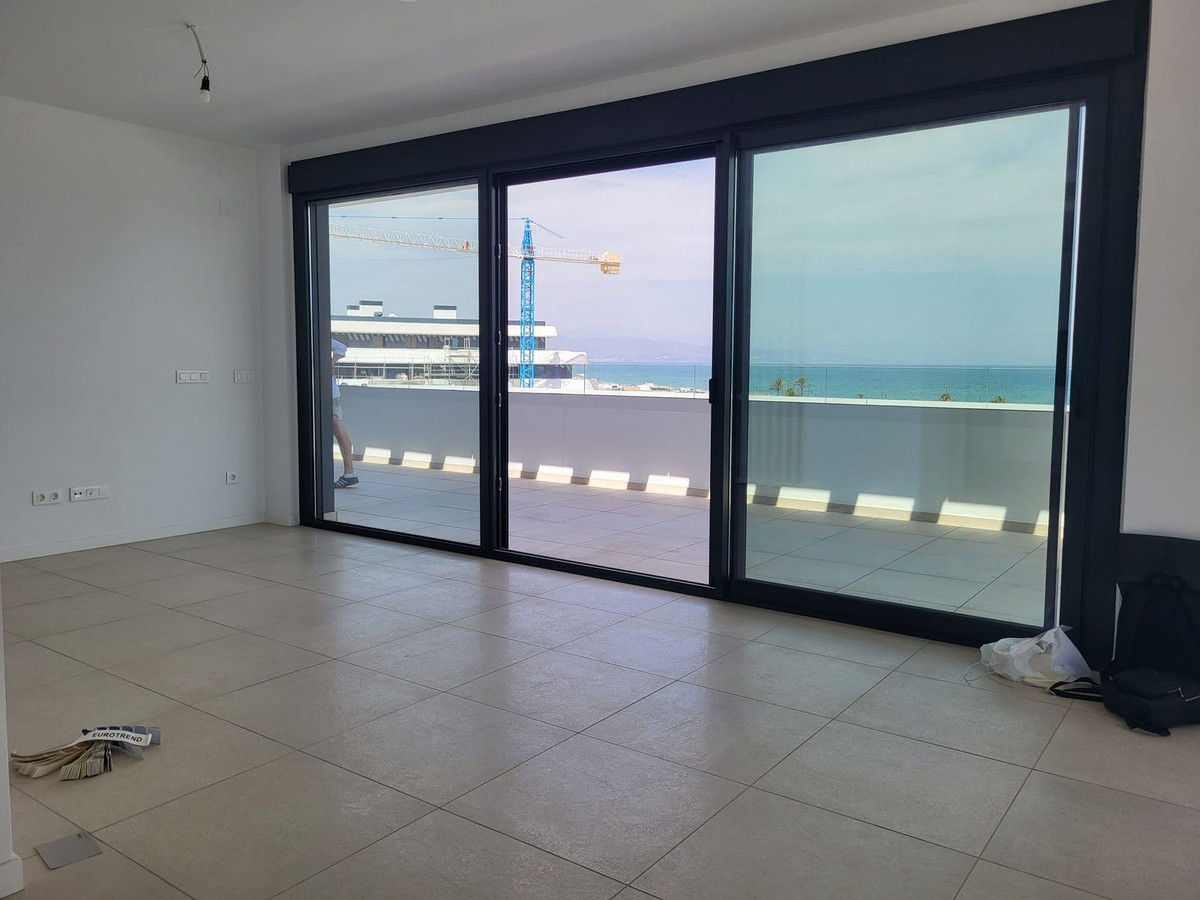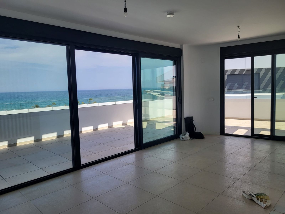 Setting: Beachfront, Beachside, Close To Sea, Urbanisation, Front Line Beach Complex Orientation: South Condition: Excellent, New Construction Pool: Communal Climate Control: Air Conditioning Views: Sea, Beach, Port, Panoramic, Garden, Pool Features: Lift, Fitted Wardrobes, Near Transport, Private Terrace, Double Glazing, Fiber Optic Furniture: Not Furnished Kitchen: Fully Fitted Garden: Communal Security: Gated Complex, Entry Phone Parking: Underground, More Than One Category: Contemporary
