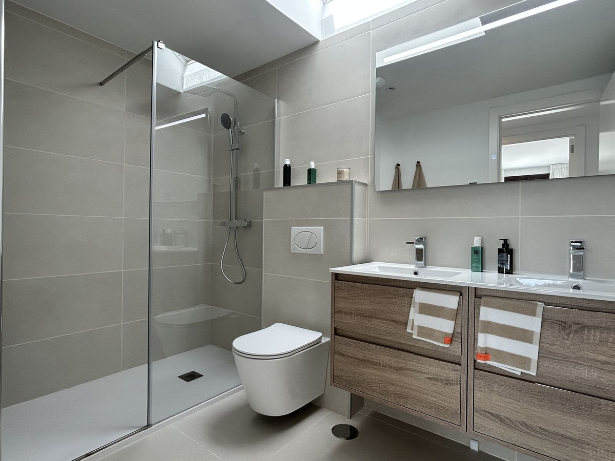 New exclusive 3-bedroom penthouse for sale with panoramic sea views and a south-facing location to enjoy sunlight, privacy, and uninterrupted views all day long. Located in the exclusive residential area of Higuerón, Fuengirola, it offers over 100,000 m² of gardens, several outdoor pools, a solarium, a jacuzzi, and a children's area; a true Mediterranean paradise in full expansion, surrounded by nature and perfectly connected. The property comes fully furnished with high-end designer pieces and a comprehensive interior design project by Ikonia Ilusion&Arte, combining selected furniture, lighting, and contemporary tones to maximize the feeling of spaciousness. The living room and kitchen share an open space that extends onto the spacious terrace through large, high-performance sliding windows, creating a seamless connection between the interior and exterior. Its features include an air-source heat pump system for heating and cooling, underfloor heating in bathrooms, aluminum/PVC exterior carpentry with double thermoacoustic and security glazing, and pre-installed motorized blinds in the bedrooms and living room. The home incorporates home automation with smoke and water leak detection, TV sockets in the living room, bedrooms, and terrace, and Jung mechanisms. The kitchen, equipped with wall and base units, a Silestone countertop, and paneled appliances with an A-grade energy efficiency rating, includes a stovetop, oven, microwave, hood, refrigerator, dishwasher, and washer-dryer. The bathrooms feature wall-hung toilets, extra-flat shower trays with screens, and, in the master bathroom, a double sink with integrated cabinetry. Large-format porcelain flooring extends throughout the home. 2.10 m interior doors, clad built-in wardrobes, and glass railings on the terraces provide elegance and security. The complex emphasizes sustainability with thermal insulation and pre-installation for an electric vehicle charger. Two parking spaces are included, and a storage room is available subject to availability. A turnkey option to experience the Mediterranean from day one and make a high-value investment in a premium location. The buyer is exempt from agency fees. Expenses arising from the purchase process, such as notary fees, registration fees, or transfer taxes, are not included in the price.