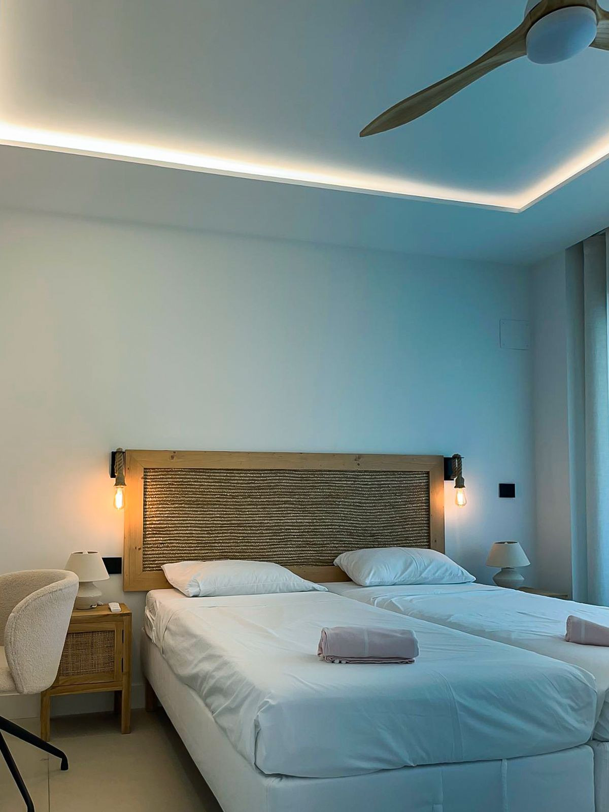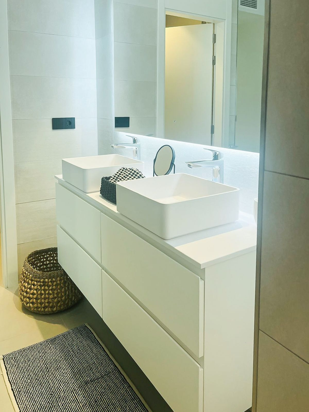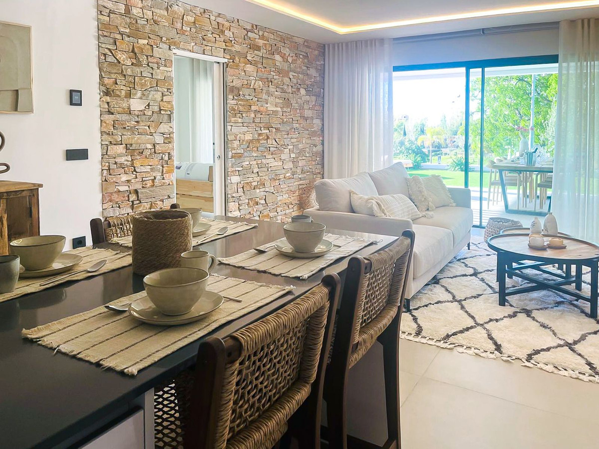 Fantastic luxury apartment located in the centre of Estepona, the garden of the Costa del Sol. This newly build apartment is conveniently situated within walking distance of the marina of Estepona , close to the romantic and vibrant old town and only 15 minutes walk from the beach of La Rada. Offering 2 bedrooms and 2 bathrooms. The main bedroom has an open plan bathroom with walk-in shower, anti-fog mirrors, electric towel racks and extra wardrobes. A fully equipped and open plan kitchen with all Bosch appliances and spacious living dining area. Carefully decorated in a perfect blend of Scandinavian minimalism, boho accents and ethnic touches. But more than that, it is the ideal place for outdoor living as there is also an oversized covered terrace that has been recently upgraded with glass curtains for maximum use of the terrace all year round and a very nice mediterranean garden with very low maintenance. The terrace has water and electricity pre-installation for an outdoor kitchen. The garden has sprinkler installation for automatic watering of the plants as wel as pre-installation for a jacuzzi. The domotic system for home automation is also installed to control the lights and electric blinds. Air conditioning and floor heating are provided though aerothermal energy. Also good to know is that the extra spacious utility room with washing and tumble dryer is just across the front door. A private underground parking space is also included in the price. The exclusive gated community offers a large outdoor pool and state of the art gym facilities, community area, game room and secure entrance. Alexia Life stands out for its architecture and design but also for the great community and is a must see if you are looking for the perfect holiday house or for all year round living.