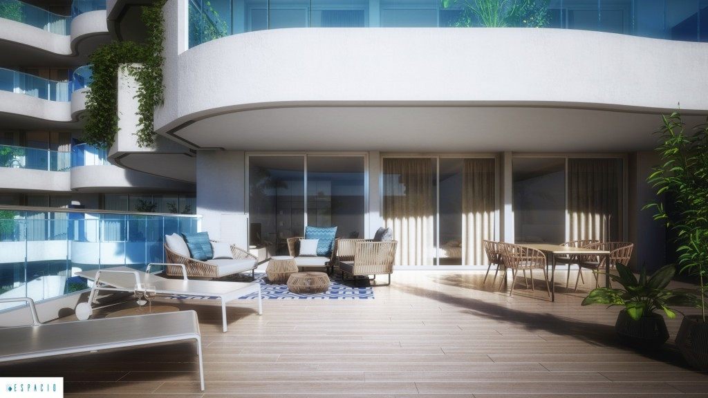 Setting: Beachside, Close To Shops, Close To Sea, Close To Town, Close To Schools Orientation: South Condition: Excellent Pool: Communal Climate Control: Hot A/C Views: Sea, Pool Features: Ensuite Bathroom Kitchen: Fully Fitted Garden: Communal Security: 24 Hour Security Category: New Development