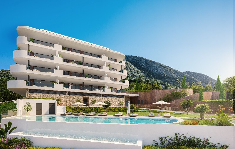 Setting: Close To Golf, Close To Shops, Close To Schools Orientation: South West Pool: Communal Climate Control: Hot A/C Views: Sea, Mountain, Beach, Panoramic, Pool Features: Near Transport, Ensuite Bathroom Kitchen: Fully Fitted Garden: Communal Category: New Development