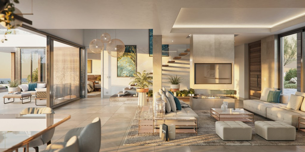 At the New Golden Mile there will be 13 unique contemporary villas where avant-garde design marks a turning point for lovers of good living. In a charming atmosphere, bathed in the light of the Mediterranean and decorated by the most beautiful sunsets, the perfect natural elements collide to project dream villas that reach perfection. Building license has been approved. PRICES from €1.295.000, depending on views and location inside the development. All villas feature 4 bedroom, 4 bathrooms with 3 different layouts: Type A = 272m2 + 133m2 terraces + pool + optional basement of 143m2 (extra payment required) + 36m2 covered garage. Type B = 272m2 + 133m2 terraces + pool + optional basement of 142m2 (extra payment required) + 36m2 covered garage. Type C = 273m2 + 141m2 terraces + pool + optional basement of 140m2 (extra payment required) + 31m2 uncovered garage. Plot sizes: 1068m² - 1175m2 PAYMENT TERMS: Step 1: Reservation €20,000 / Step 2: Buy the plot / Step 3: Sign turnkey contract and pay 30,000€ + VAT which, amongst others, include the project of the villa / Step 4: When the building license is issued, construction starts with payment of 20% + VAT / Step 5: Monthly payment & finance. It is possible to apply for a developers mortgage, subject to approval. Construction period is approx. 12 months. TAXES: VAT on the plot is 21 (paid by the buyer).