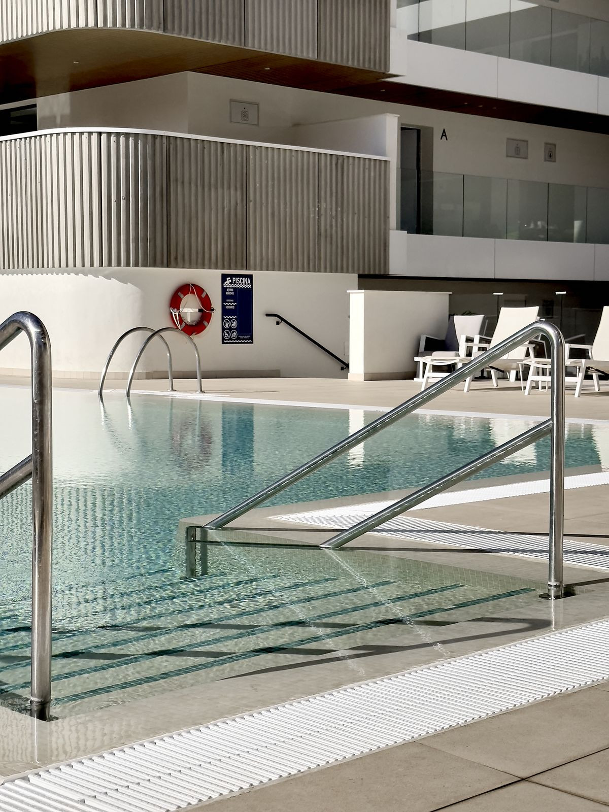 Setting: Town, Beachside, Port, Close To Port, Close To Shops, Close To Sea, Close To Town, Close To Schools, Close To Forest, Marina, Close To Marina Orientation: South East, South, South West Condition: Excellent Pool: Communal, Indoor Climate Control: Air Conditioning, Pre Installed A/C, U/F/H Bathrooms Views: Sea, Garden, Pool, Urban Features: Covered Terrace, Lift, Fitted Wardrobes, Near Transport, Private Terrace, WiFi, Gym, Sauna, Storage Room, Utility Room, Ensuite Bathroom, Access for people with reduced mobility, Double Glazing, 24 Hour Reception, Fiber Optic Furniture: Fully Furnished Kitchen: Fully Fitted Garden: Communal Security: Gated Complex, 24 Hour Security Parking: Underground, Covered, Private Category: Beachfront, Holiday Homes, Investment, Luxury, Resale