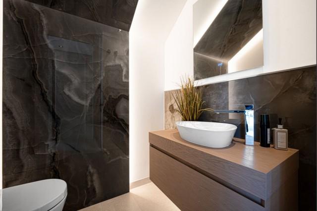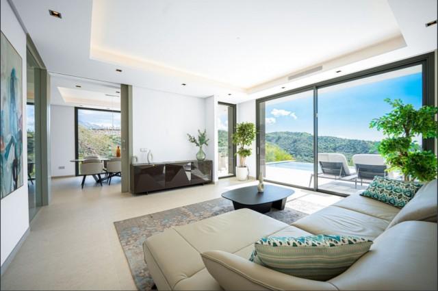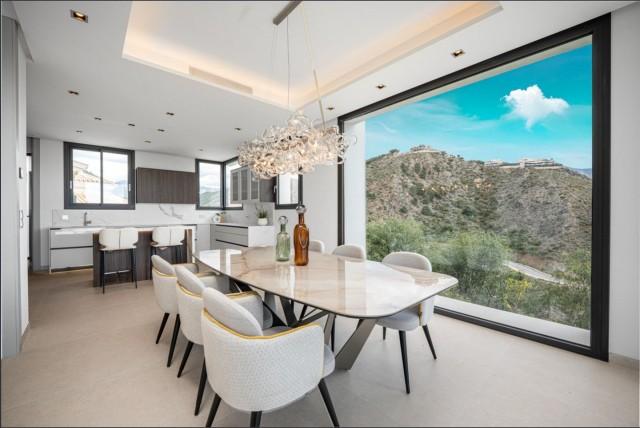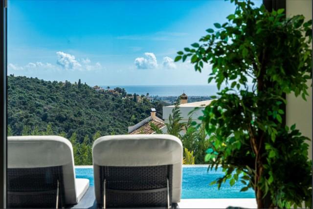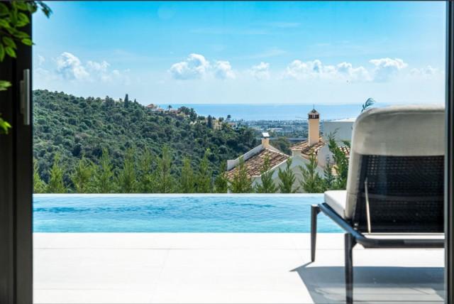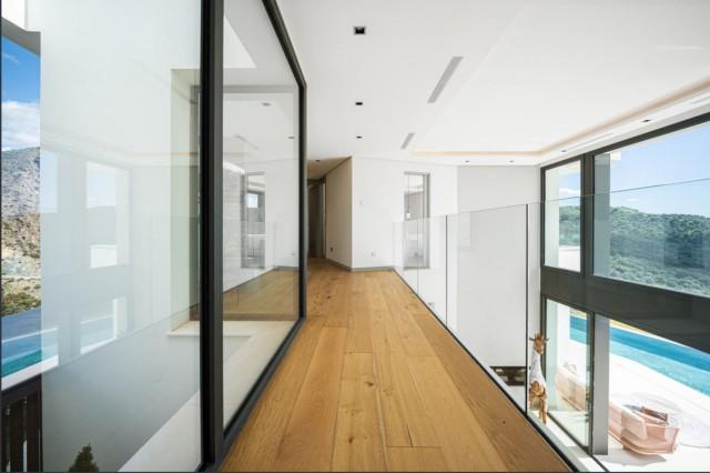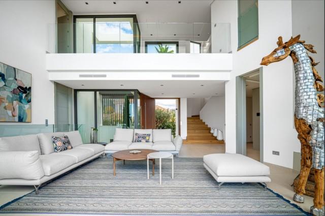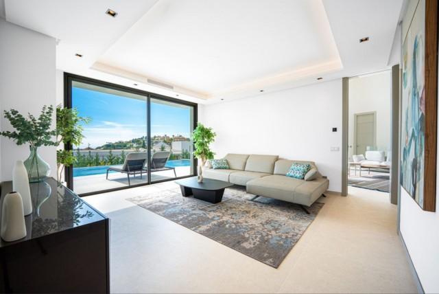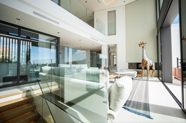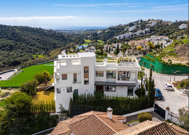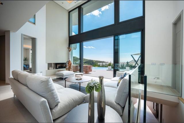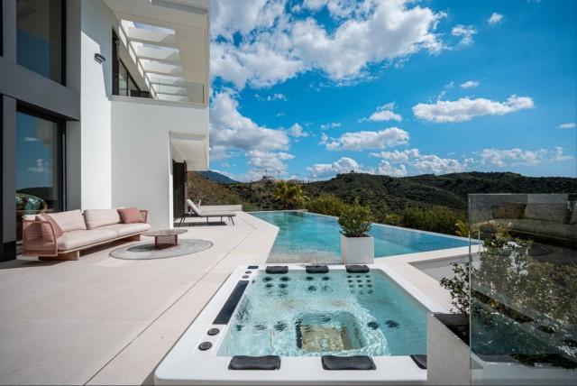 Reduced from 4.950.000 to 4.695.000 for a quick sale. A striking modern villa set in the exclusive gated community of Lomas de La Quinta, overlooking the golf valley and the Mediterranean Sea. This south-facing property sits on a 1,377 m² plot and offers complete privacy, panoramic views, and refined design. The home features six bedrooms, ensuite bathrooms, and open living spaces with floor-to-ceiling windows that fill every room with light. Inside, the villa combines modern architecture with comfort. The main living area has double-height ceilings and opens to expansive terraces that lead to a saltwater infinity pool. The kitchen is sleek and fully equipped with premium appliances, blending functionality with minimalist style. Upstairs, the primary suite offers a private terrace, a freestanding bath with mountain views, and walk-in wardrobes. Each guest bedroom delivers the same level of comfort and elegance. The rooftop solarium presents 360° views of the surrounding mountains, golf course, and coastline — ideal for entertaining under the stars. The basement offers space for a gym, cinema, or bar, plus a private guest suite with garden access. With smart home technology, underfloor heating, and parking for three cars, This villa stands as a rare blend of sophistication, tranquility, and timeless appeal in Marbella’s finest setting. Villa, Frontline Golf, Fitted Kitchen, Underground parking, Pool: Private, Garden: Private, Facing: South Views: Golf, Mountains, Panoramic, Sea Features: 2 Parking Places, 24 hrs Security System, 5-10 minutes to shops, Air Conditioning Hot/Cold, Alarm System, Basement, Central Heating, Close to schools, Contemporary style, Conveniently Situated for Golf, Conveniently Situated Schools, Double Glazing, En suite bathroom, Excellent Condition, Fireplace, Fitted Kitchen, Fitted Wardrobes, Frontline Golf, Garden, Garden and Pool View, Gated Complex, Guest Wardrobe, Kitchen diner, Luminous, Luxury Fittings, Modern Style, Mountain View, Near Transport, Newly Built, Prestigious Area, Private pool, Private Terrace, Salt water pool, Sea Views, Smart Home, Solar Heated Water, Solarium, Sought After Area, Spacious Accommodation, Storage room, Underfloor Heating, Underground parking, Walk-in closet