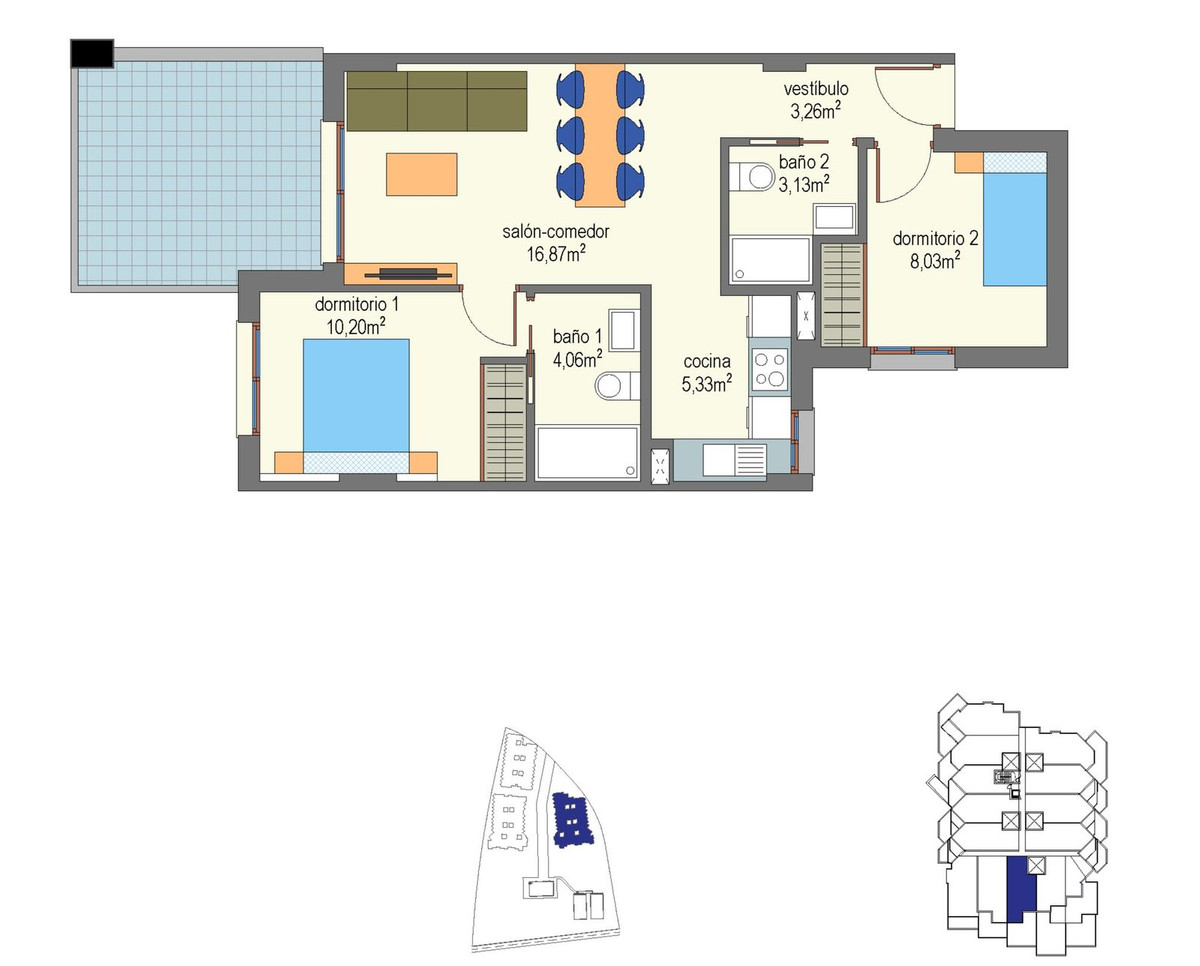 Setting: Beachfront, Port, Close To Sea Condition: New Construction Pool: Communal Climate Control: Air Conditioning, Central Heating Views: Sea, Beach, Panoramic, Garden, Pool Features: Covered Terrace, Fitted Wardrobes, Near Transport, Private Terrace, WiFi, Paddle Tennis, Courtesy Bus Furniture: Fully Furnished Kitchen: Fully Fitted Garden: Communal Security: Gated Complex Parking: Garage Utilities: Electricity, Drinkable Water, Telephone, Gas Category: Beachfront, Holiday Homes