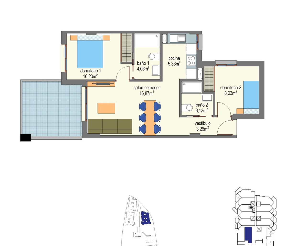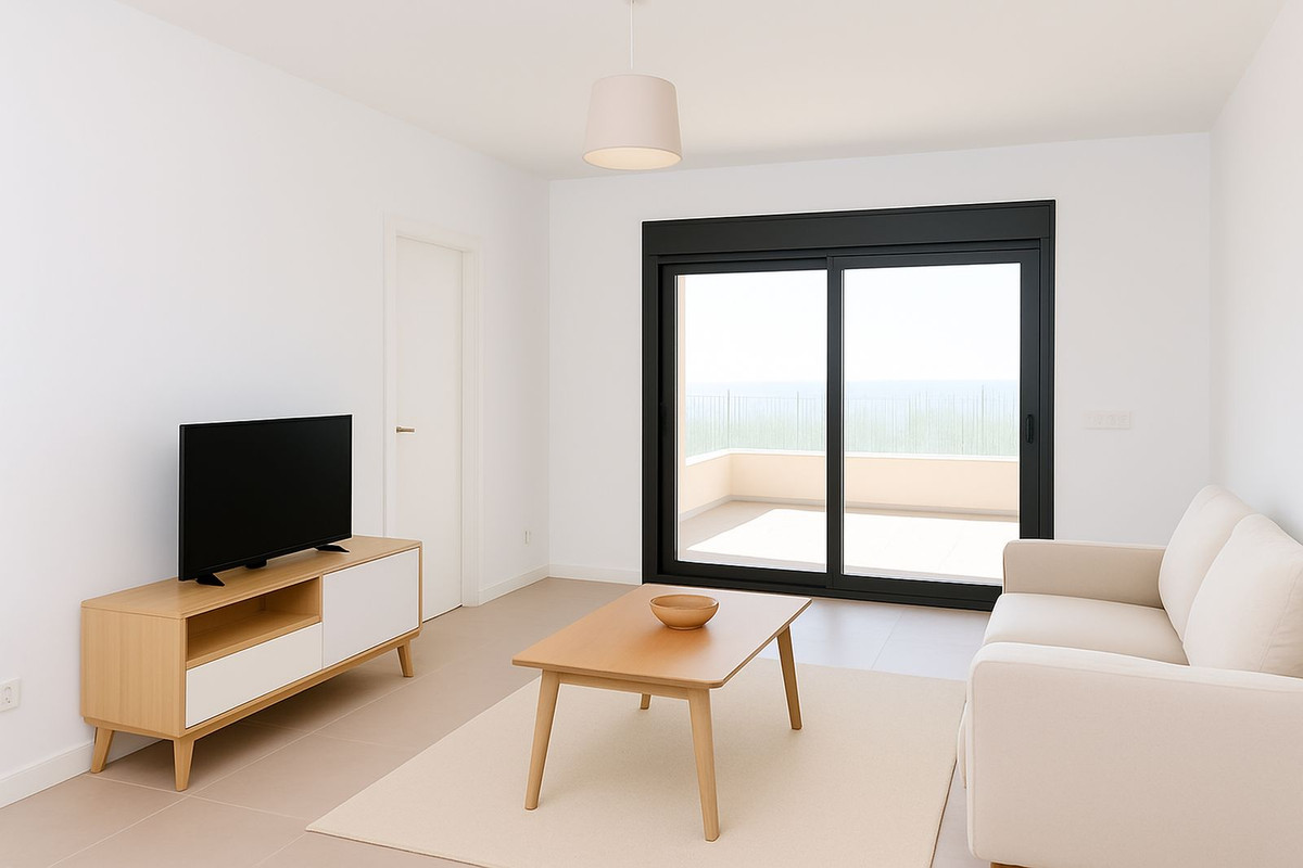 Modern Apartment with Terrace and Partial Sea Views – Costa Blanca This charming first-floor apartment offers a comfortable Mediterranean lifestyle in one of the most sought-after areas of the Costa Blanca. Located just a few minutes from the beach and with easy access to all amenities, it is ideal as a permanent residence, second home, or holiday rental investment. The property features 2 bedrooms and 2 bathrooms, distributed across a modern, functional space filled with natural light. A standout feature is its private terrace—an ideal place to relax and enjoy the pleasant year-round climate, with partial sea views and natural surroundings. Specifications include: Furnished kitchen with ceramic hob, sink, and extractor hood Fully fitted bathrooms with furniture and shower screen Built-in wardrobes with interior fittings Double-glazed windows and motorized shutters Excellent quality materials and finishes Located in a quiet residential development with landscaped gardens and a peaceful atmosphere, this apartment combines comfort, design, and proximity to the sea—perfect for fully enjoying the Mediterranean lifestyle.