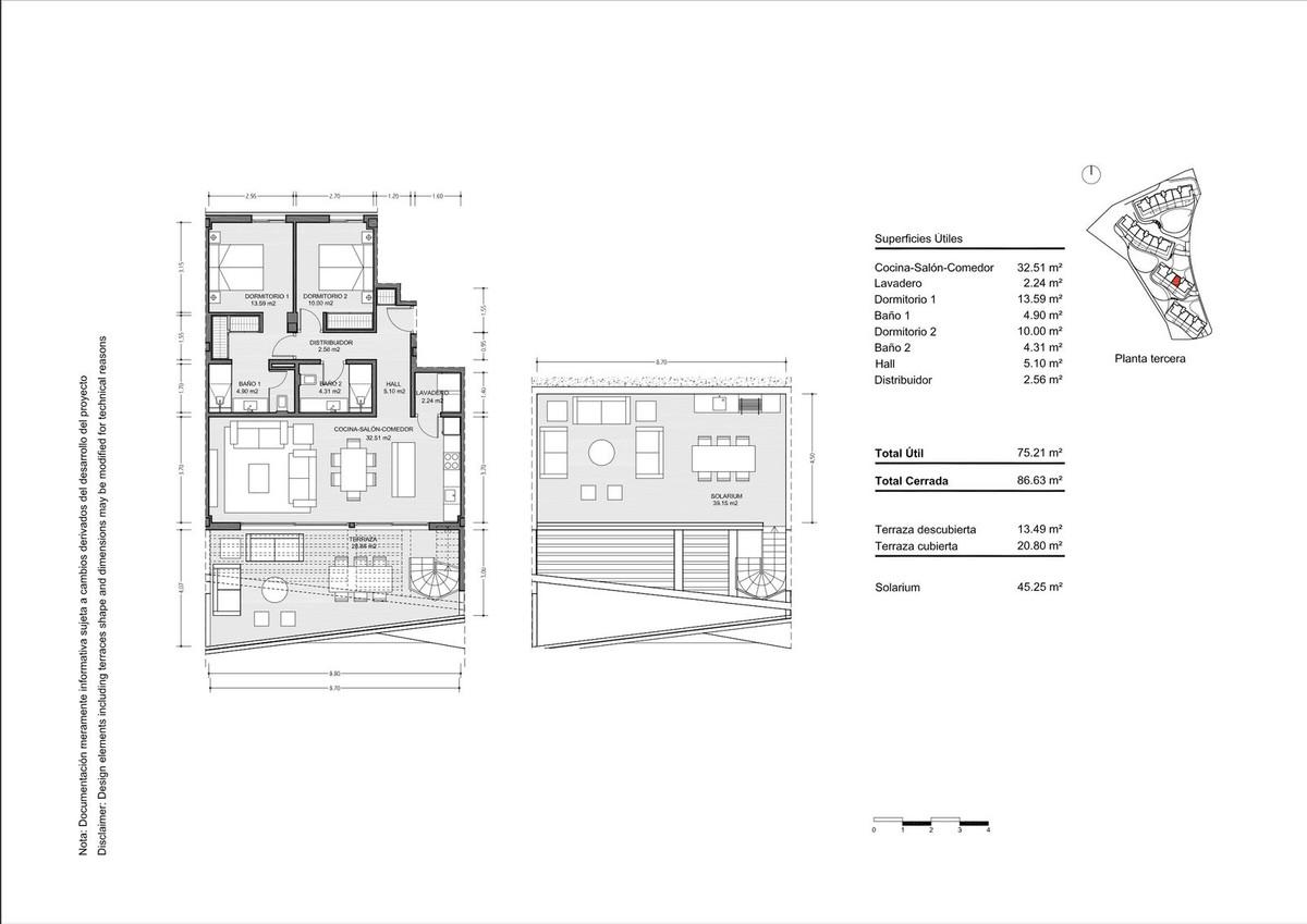 Luxurious 2-Bed Duplex Penthouse with Panoramic Sea & Mountain Views – Higuerón West, Fuengirola Indoor-outdoor living at its finest awaits in this southwest-facing duplex penthouse, located in the prestigious Higuerón West, an eco-sustainable gated resort surrounded by lush green areas and just minutes from the beach. Boasting 86 sqm of interior space and two expansive terraces — a 34 sqm partially covered terrace off the living room and a 45 sqm rooftop terrace — this home offers breathtaking panoramic views of the Mediterranean Sea, the Mijas Mountains, and the verdant green belt of the urbanisation. The bright open-plan living area blends seamlessly with the main terrace, creating a perfect space for alfresco dining, relaxing in the sun, or enjoying the scenery. The apartment features two bedrooms, including a master with a dressing closet, two modern bathrooms with underfloor heating, a fully equipped open kitchen with Neff appliances, a laundry room, and an entrance closet. Comfort and convenience are enhanced by electric awnings inside the apartment and on the main terrace. The apartment is fully furnished and ready to move in. The penthouse is further complemented by two terraces ideal for entertaining or simply enjoying the sunset, a storage room, and two large parking spaces. Residents have access to exceptional facilities, including the Higuerón Sports Club with paddle and tennis courts, a heated 25m pool, gym, spa, and Beach Club, as well as a co-working area, electric charging points for bicycles and cars, concierge service with optional rental management, and eco-friendly walking and cycling paths throughout the urbanisation. Nearby, you will find a supermarket, dry cleaner, pharmacy, and a dozen restaurants, including the Michelin-starred Sollo. The property is well-connected, with a train station providing easy access to Malaga city center and airport, just 15 minutes from Malaga International Airport and 20 minutes from Puerto Banús and Marbella, and only a few minutes from the beach. This exceptional duplex penthouse combines luxury, comfort, and lifestyle in one of the most desirable gated resorts on the Costa del Sol. Contact us today to arrange a private viewing!