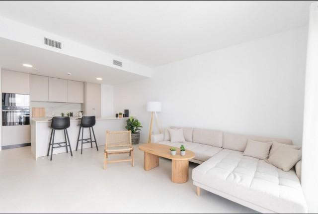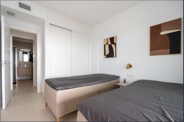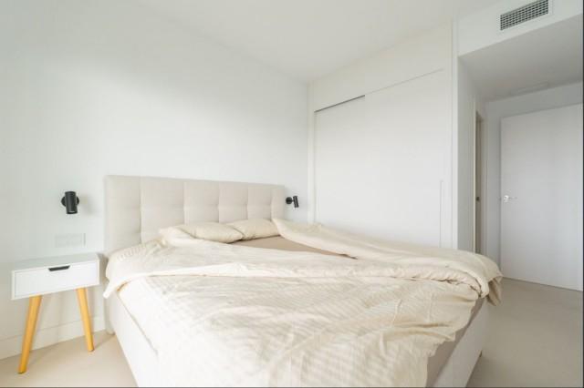 Brand new and bright 2-bed 2-bath furnished apartment in Las Lomas del Higuerón, located in Fuengirola in the heart of the Costa del Sol. The neighborhood offers public gardens with cycling paths and running tracks. On top, you will have access to the sports and wellness facilities of the adjacent Curio by Hilton Hotel, hosting 4 swimming pools, a luxury Spa, sports club, gym, and 6 restaurants, including Michelin star Restaurant Sollo at your disposal. The wide sandy beaches of Carvajal, with cozy beach bars and fine restaurants, are on your doorstep. The Altos del Higuerón shopping center, along with the picturesque white villages of Benalmádena and Mijas, is just a short drive away. Easy access to the A7 motorway, so you will reach Málaga Airport in only 15 minutes. This comfortable apartment is located on the first floor, and thanks to its South orientation, natural light fills the rooms, allowing for plenty of sunshine to enjoy during the day. The spacious and partly covered balcony offers nice views of the Mediterranean Sea and the Mijas mountains. Containing 2 bedrooms, 2 bathrooms, an open plan living-dining room with a modern kitchen including a large peninsula bar with integrated sink and dishwasher. Inside and outside merge seamlessly thanks to floor-to-ceiling Cortizo glass sliding doors over the full width of the property, connecting the salon and bedrooms barrier-free to the sunny terrace. Wardrobes, a heat pump for domestic hot water, a washing machine, air conditioning, underfloor heating, bathrooms, fiber optic internet, and an alarm system are all fitted. Besides, this apartment comes with 2 private parking spaces in the underground garage and a storage room. Communal garden and swimming pool, fully furnished in modern Scandinavian style, so ready to enjoy your holidays now! Contact us for viewings. Apartment, Near Beach, Kitchen-lounge, Underground parking, Communal Pool, Garden: Community, Facing: South Views: Countryside, Courtyard, Garden, Partial Sea Features: 2 Parking Places, 5-10 minutes to Golf Course, Air Conditioning Hot/Cold, Alarm System, Ceramic gres floor, Close to schools, Community Garden, Community Pool, Conveniently Situated for Golf, Conveniently Situated Schools, Conveniently Situated Tennis, Covered Terrace, Disabled access, Double Glazing, Electric Blinds, Electric Entry Phone, Excellent Condition, Fitted Kitchen, Fitted Wardrobes, Furnished, Garden and Pool View, Gated Complex, Guest Wardrobe, Landscaped Gardens, Lift, Near amenities, Near Transport, Newly Built, Private Terrace, Salt water pool, Sea Views, Storage room, Underfloor Heating, Underground parking, Utility Room, Wifi available