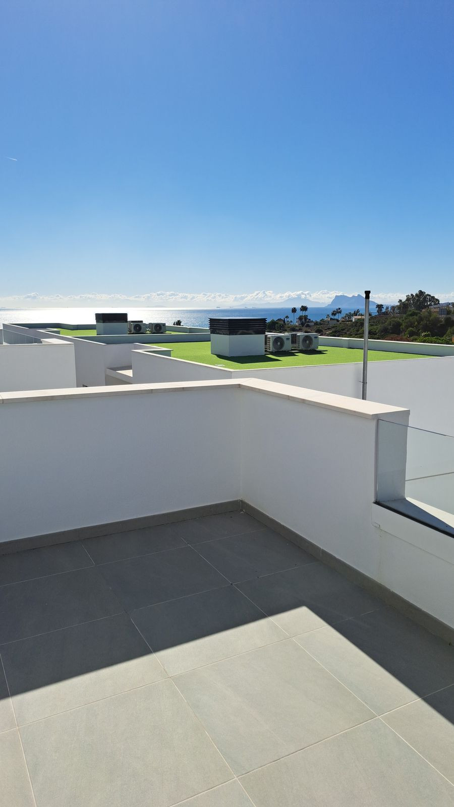 Superb corner house located in the BLUE VIEW complex Well new, never lived in. Giving you the possibility to buy new with 7 VAT. Open view of the sea. Gilbraltar and the mountain. Ease of access from the garage also leading directly to the front door of your home. On foot from the beach and beach bars. 5 minutes from Torreguadiaro and 7 min from the port of Sotogrande. Investment property or to enjoy it with your family, this property only needs to be bought.