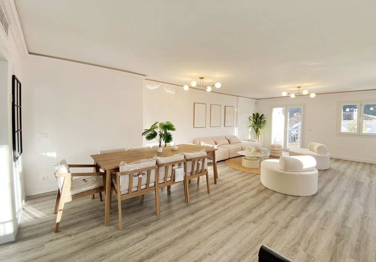 This exclusive and modern 235 m² duplex has been completely renovated with the highest quality materials, combining elegance, comfort and an exceptional layout. Located in the heart of Benahavís, one of the most charming towns on the Costa del Sol, this property stands out for its spaciousness, luminosity and a design designed to offer you maximum comfort in each of its spaces. When you enter the apartment on the upper floor, you will be surprised by the spacious living-dining room, an open and welcoming space that becomes the epicentre of the home. Here you will find a fireplace that provides warmth and a touch of traditional style, ideal for creating a unique atmosphere during the colder months. From the living room, you will have direct access to a large terrace where you can enjoy the vibrant atmosphere of the town of Benahavis. This space is perfect for relaxing outdoors, enjoying a family meal or simply contemplating the natural landscape that surrounds the town. The kitchen, fully equipped with top quality appliances, has a practical indoor and outdoor laundry room, ideal for optimising the use of space. On this same floor, you also have a comfortable and bright bedroom, along with a full bathroom, perfect for visitors. Going down an elegant staircase, you will reach the lower floor, where there are three large double bedrooms. The main one stands out for having an en-suite bathroom, designed with impeccable taste and luxury materials. The other two bedrooms share a full bathroom, both designed to offer maximum comfort. On this floor you will also discover a multipurpose space, ideal for converting it into an office, a study, a games room or a fifth bedroom, depending on your needs. Every corner of this duplex has been carefully cared for: the furniture is completely new, so everything is ready for you to settle in without any worries other than enjoying yourself. The renovation has been carried out under strict quality standards, guaranteeing a modern and high-end atmosphere in all rooms. In addition to all these amenities, the apartment has a separate entrance, giving it exceptional privacy and a feeling of a secluded home within the vibrant center of Benahavís. You will be just a few steps from restaurants, shops and all the services that this picturesque town has to offer, while being able to enjoy the tranquility of an exclusive residential environment. This is the ideal home for those looking for space, style and a privileged location. Don't miss this opportunity and come and see it!