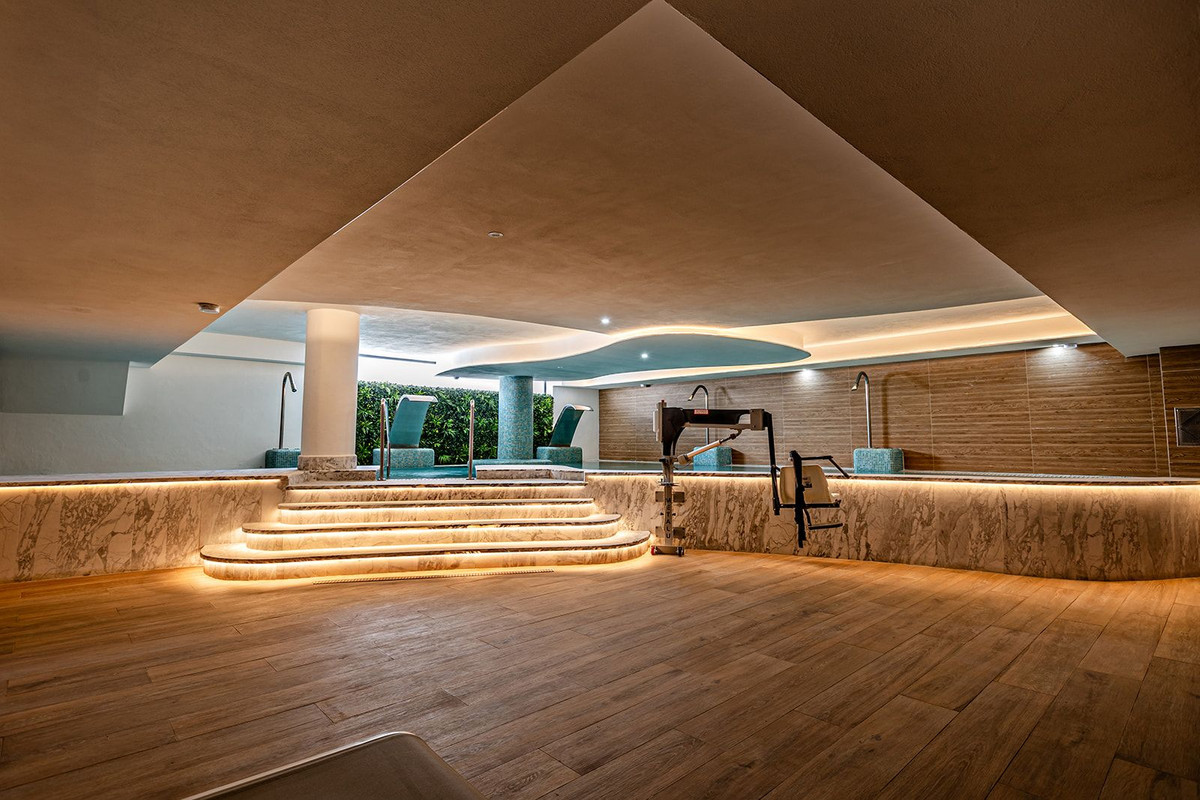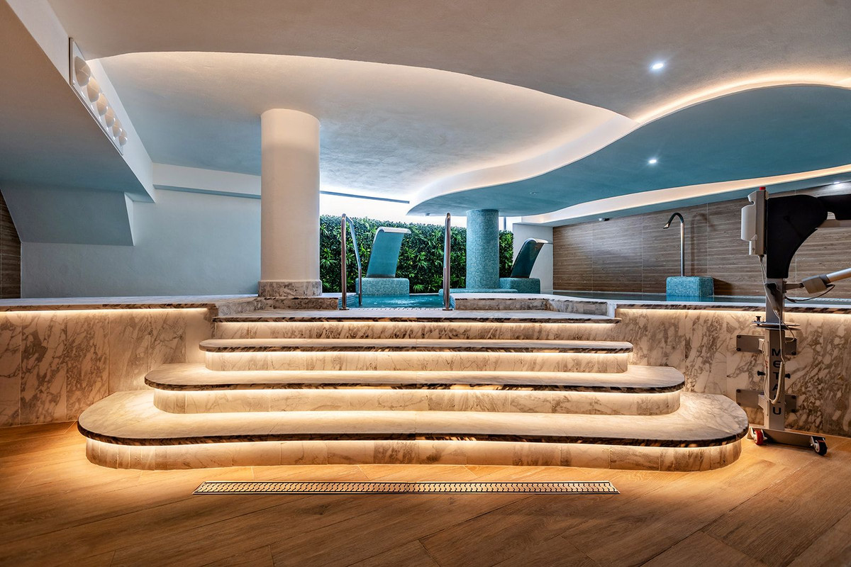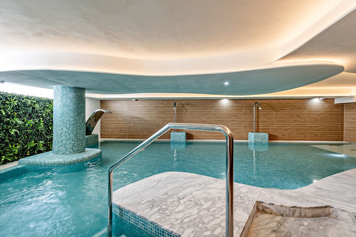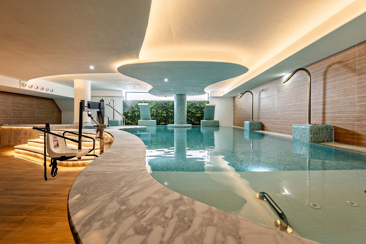 Setting: Frontline Golf, Close To Golf, Close To Town Orientation: South Condition: Excellent Pool: Communal, Indoor, Children`s Pool Climate Control: Air Conditioning, Cold A/C Views: Sea, Mountain, Golf, Panoramic Features: Covered Terrace, Lift, Fitted Wardrobes, WiFi, Gym, Sauna, Ensuite Bathroom, Double Glazing, Fiber Optic Furniture: Fully Furnished Kitchen: Fully Fitted Garden: Communal, Landscaped Security: Gated Complex, Entry Phone Parking: Covered, Communal Utilities: Drinkable Water Category: Golf, Investment, Luxury, Resale, Contemporary