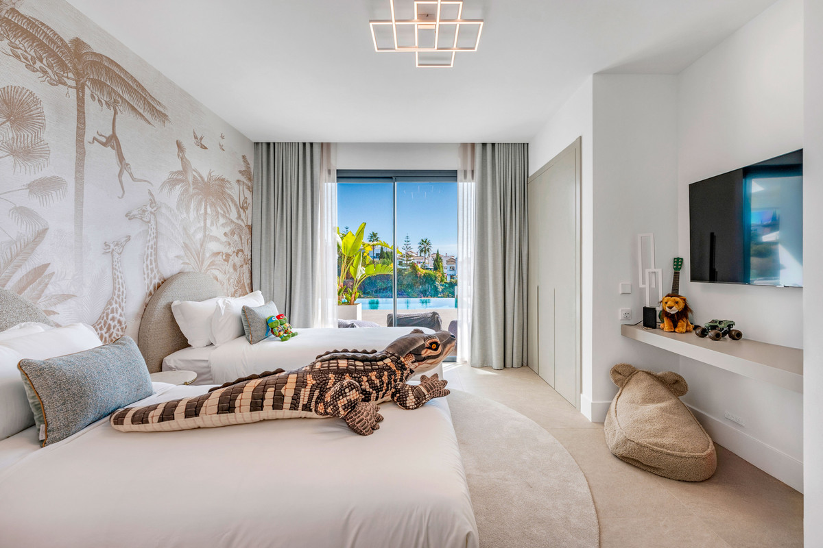 Perfectly set within the exclusive La Resina Golf community, this is a modern four-level residence crafted by renowned architect Francisco Martínez Galván. With 674 m² of refined living and 249 m² of terraces, it delivers bold design, effortless luxury, and a seamless indoor-outdoor lifestyle. Arrival A private driveway leads to the top-floor entrance, where sweeping views of the Mediterranean and La Resina Golf Course immediately set the tone. Clean architectural lines, abundant natural light, and striking geometry create a stunning first impression. Main Living The heart of the home is an open-plan living and dining area anchored by a sculptural natural-stone kitchen island, supported by a discreet secondary kitchen. Floor-to-ceiling windows slide open to the infinity saltwater pool and lush tropical gardens, forming a private oasis for relaxation and entertaining. Two guest suites, integrated sound, and smart-home readiness complete this level. Upper Level The entire floor is designed for pure privacy. The master suite features a generous terrace with breathtaking sea views, a custom walk-in wardrobe, and a marble bathroom with a freestanding tub. A second en-suite bedroom and a flexible office/TV room enhance the space. Lower Level A luxury wellness and entertainment hub: cinema room, glass-fronted wine cellar, full gym, sauna, steam room, and cold plunge. A games room with designer bar, a cozy second living area, and two garden-level en-suite bedrooms create the perfect retreat. Additional features include a panic room, storage, machine room, and full underfloor heating. Lifestyle & Location La Resina Golf offers privacy, security, and contemporary architectural harmony. Nearby are the International American College, Bossa Café’s padel courts, everyday amenities, and Estepona’s beaches and marina—just minutes away. Malaga Airport is a smooth 45-minute drive. Solarium With full 360 degree views, you feel on top of the world. With stunning views to Gibraltar and the Atlas Mountains in North Africa! Full kitchen including built in top of the range BBQ, fridge, ice machine etc State of the art Jacuzzi to enjoy a sundowner. Villa One is a statement of modern coastal living—where architecture, comfort, and lifestyle meet in perfect balance.