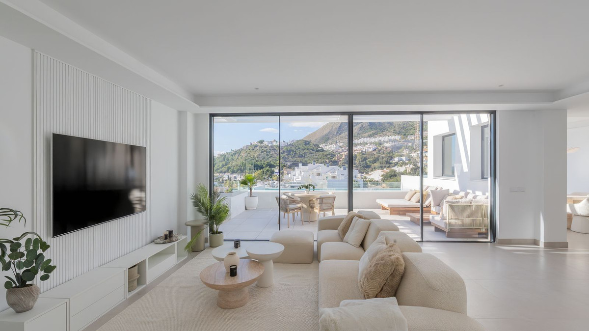 Discover this spectacular contemporary villa with panoramic views of the Mediterranean Sea, Fuengirola Bay and the mountains. Located in one of the most sought-after areas of Benalmádena, it offers a unique lifestyle where elegance, privacy and comfort come together perfectly. Modern design and perfect layout. The property has 4 spacious en-suite bedrooms and a guest toilet. From the entrance, floor-to-ceiling windows fill each space with natural light and highlight truly unforgettable views. The main space combines a designer kitchen, dining room and living room in an open-plan concept that flows onto a west facing terrace. Here you can enjoy outdoor living on a spectacular, large terrace with a private swimming pool. Premium fittings and smart technology. As a resident of Marae, you will enjoy a communal swimming pool, gym and leisure area, as well as an unbeatable location: Just minutes from the beach, the marina and renowned restaurants such as Yucas and Trocadero. Close to Benalmádena Pueblo and international schools. Excellent access to the airport, golf courses and main transport links. Marae Residence is a development designed to impress and conceived to enjoy Mediterranean luxury to the fullest. Perfect as a family home, second home or secure investment on the Costa del Sol.