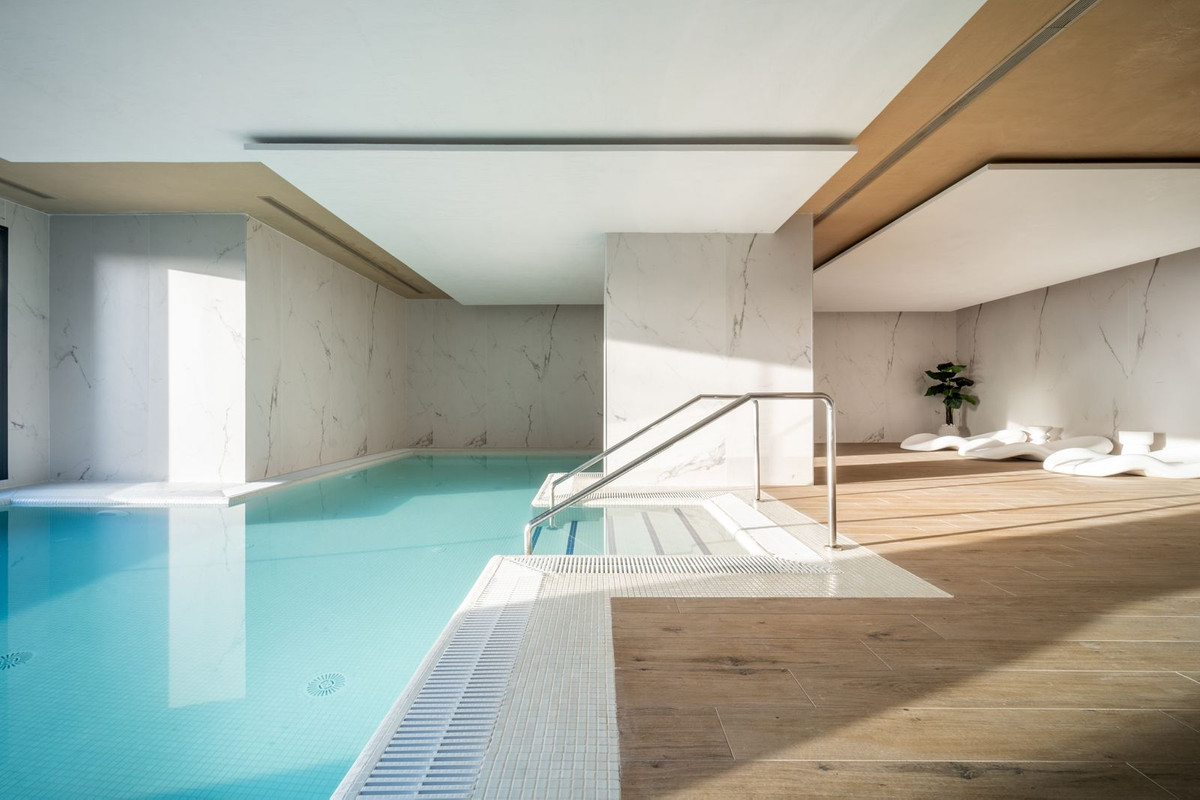 Setting: Urbanisation Orientation: South Condition: Excellent Pool: Communal, Indoor, Heated Climate Control: Air Conditioning, Hot A/C, Cold A/C Views: Sea, Panoramic Features: Lift, Fitted Wardrobes, Private Terrace, WiFi, Gym, Sauna, Access for people with reduced mobility, 24 Hour Reception Furniture: Fully Furnished Kitchen: Fully Fitted Garden: Communal Security: Gated Complex, Electric Blinds, Entry Phone, 24 Hour Security, Safe Parking: Underground, Private Utilities: Electricity, Drinkable Water Category: Golf, Holiday Homes, Investment, Luxury, Resale