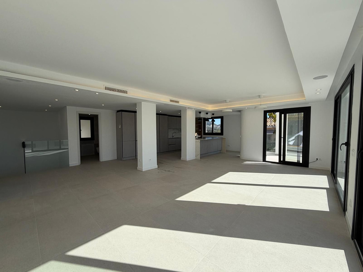 This elegant villa offers a perfect blend of comfort, space, and modern design, ideal for those seeking a refined yet relaxed lifestyle in a highly desirable neighbourhood. Located close to the international school, it’s perfect for families looking for convenience, safety, and accessibility. Filled with natural light, the villa boasts open-plan living areas with large windows and glass doors, seamlessly connecting indoor and outdoor spaces and enjoys open views with pleasant sea views. The modern open-plan kitchen features a large central island with an integrated cooking field, ideal for both everyday living and entertaining guests. The property includes three spacious bedrooms, all en-suite, and a total of five bathrooms, ensuring comfort and privacy for all. Every room is equipped with independent air conditioning, providing year-round climate control. Outdoor living is exceptional, with a private swimming pool, multiple patios and terraces, and comfortable outdoor lounge areas—perfect for relaxation, social gatherings, or enjoying the peaceful surroundings. Enjoy open views with some sea glimpses from the villa, adding to its serene and exclusive ambiance. Additional features include a private garage and a large hidden laundry room tucked behind the kitchen, combining practicality with a clean, elegant interior design. This villa is not just a home—it’s a lifestyle choice, offering luxury, privacy, and convenience in a safe and friendly neighbourhood close to essential amenities, schools, and local attractions.