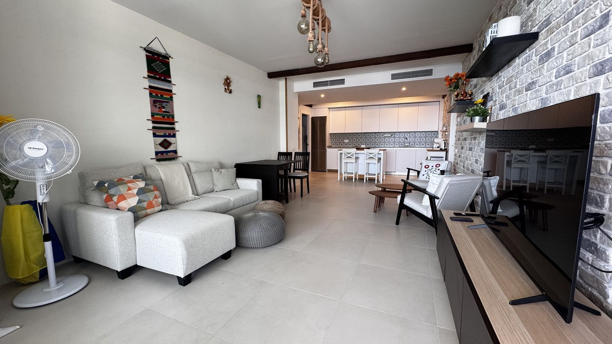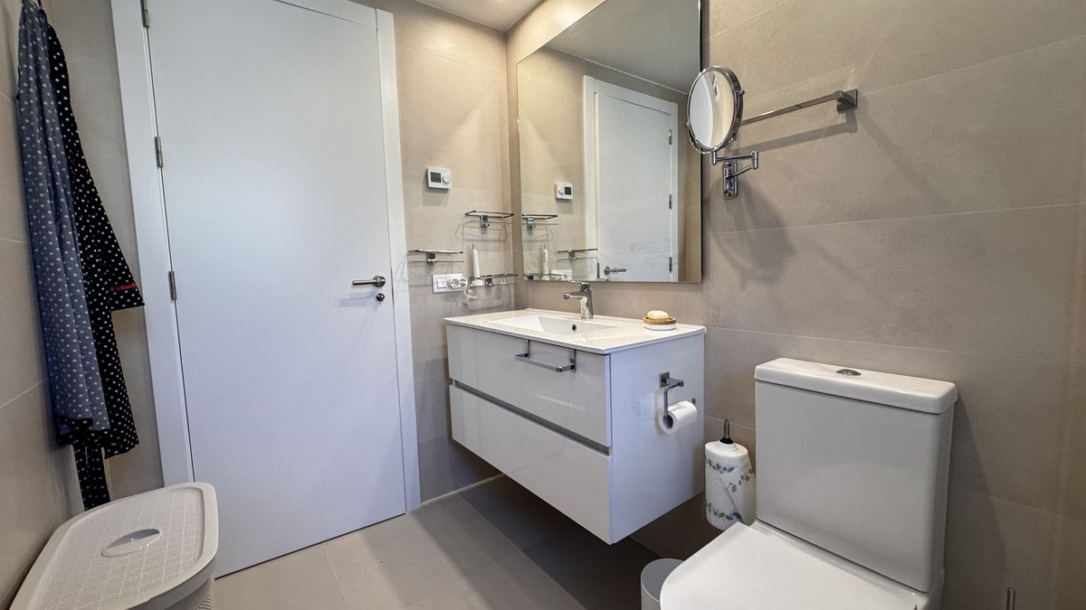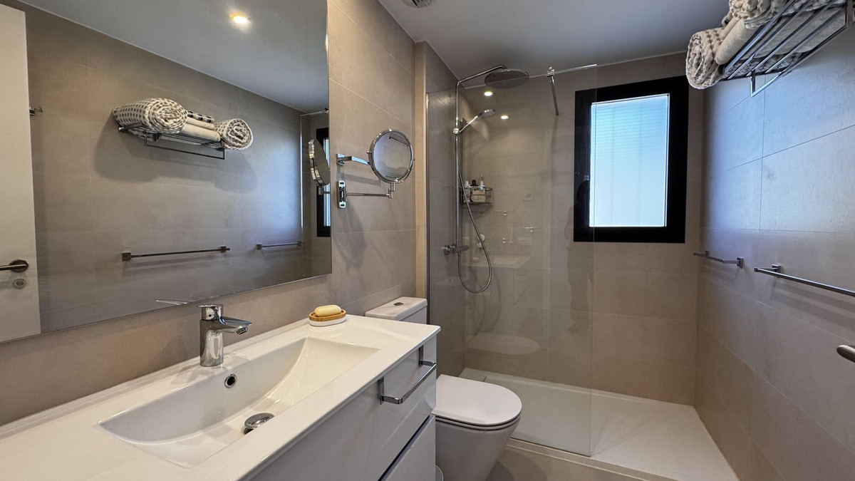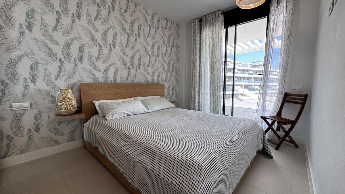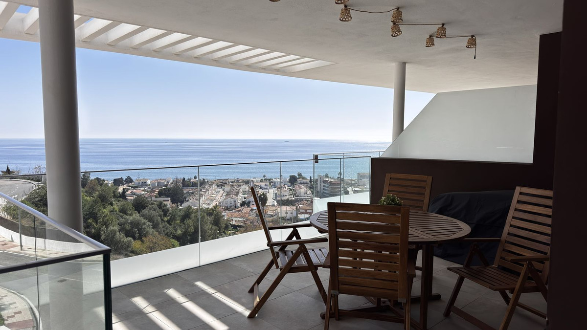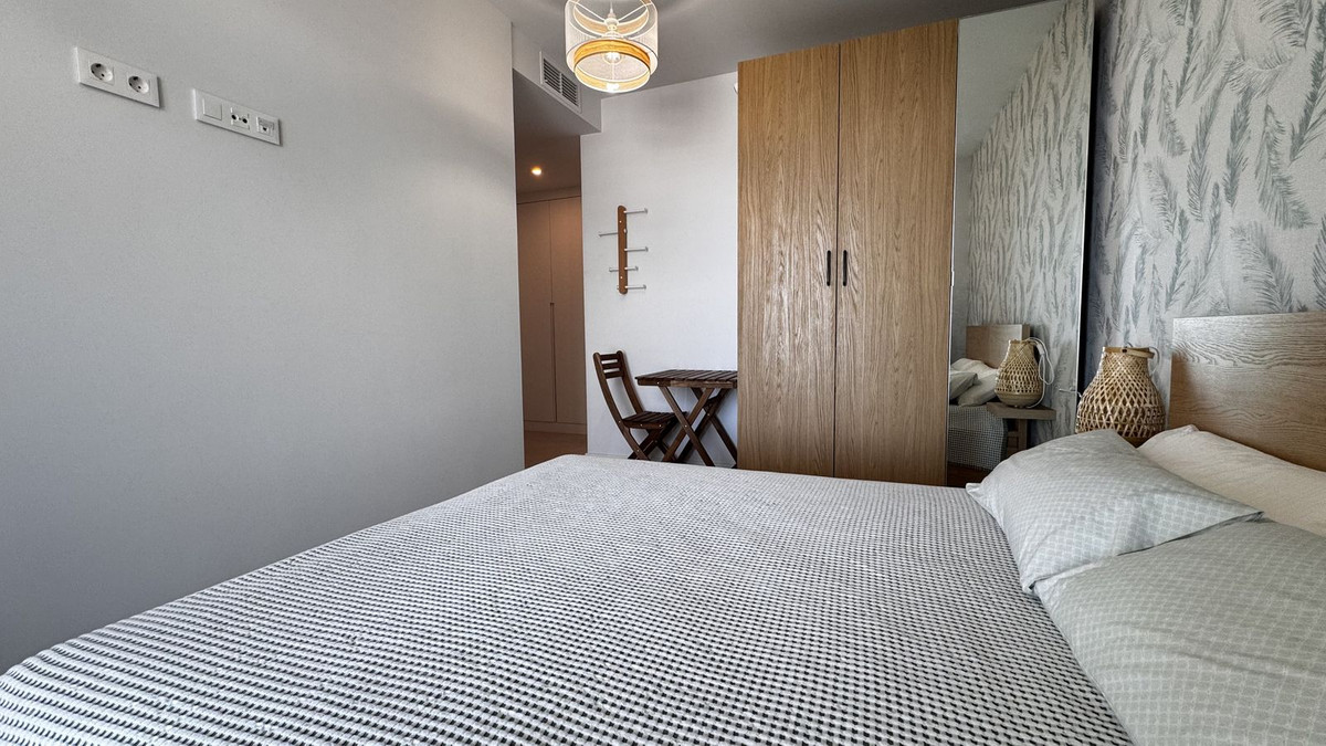 Luxury apartment with stunning sea views in the nearby suburb of Malaga. Brand new homes with developer's warranty. These brand new apartments feature 3 bedrooms, 2 bathrooms, and a living room with an open-plan kitchen. All rooms have access to a spacious terrace, offering spectacular views of the town of Rincon de la Victoria and the sea. The property includes a fully equipped kitchen with Bosch appliances, built-in wardrobes in the bedrooms, and fully equipped bathrooms. The laundry area has an aerothermal system, washing machine, and dryer. All apartments have air conditioning and water underfloor heating. The features also include electric exterior blinds in all rooms and double-glazed sliding doors to the terrace, ensuring thermal and acoustic insulation. The apartment boasts a modern, high-quality design and is sold with all necessary furniture for immediate living, including terrace furniture. Additionally, mosquito nets have been installed on all windows. The distance to the beach and Mercadona supermarket is approximately 1 km. Within walking distance, all amenities are available: shops, restaurants, schools, sports facilities, and a medical center. The area is known for its tranquil atmosphere, surrounded by nature, with excellent car access to Malaga (25 minutes) and the airport (30 minutes). The apartments are sold fully furnished and are available for viewings. The residential complex features a large swimming pool and a children's pool. The price includes a parking space in the underground garage and a spacious storage room. Total area: 105 m² Terrace: 36 m² Bedrooms: 3 Bathrooms: 2 Centralized air conditioning Underfloor heating.