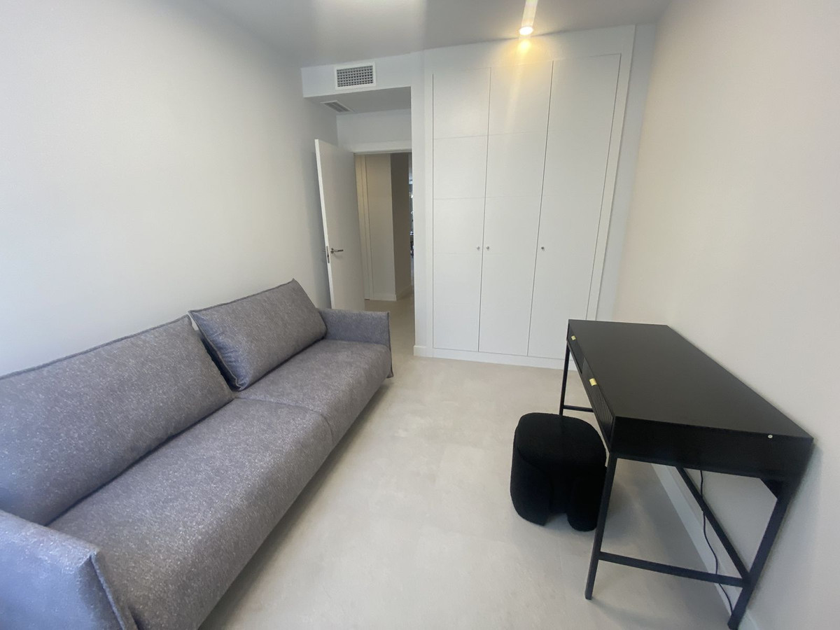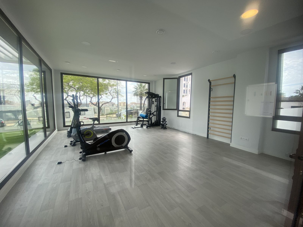 Middle Floor Apartment, Estepona, Costa del Sol. 3 Bedrooms, 2 Bathrooms, Built 120 m², Terrace 20 m². Setting : Close To Shops, Close To Sea, Close To Schools. Orientation : East. Condition : Excellent. Pool : Communal. Climate Control : Air Conditioning. Views : Sea, Mountain, Urban. Features : Covered Terrace, Lift, Fitted Wardrobes, Near Transport, Private Terrace, Gym, Ensuite Bathroom, Access for people with reduced mobility, Double Glazing. Furniture : Fully Furnished. Kitchen : Fully Fitted. Garden : Communal. Parking : Underground.